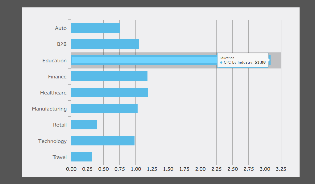 从细分行业来看,旅游业广告的 CPC 为 0.31 美元,零售为 0.39 美元,都低于 2018 年第四季度的水平,这主要是因为假期营销季的高峰期已经过去,广告库存的价格变得更便宜。就所有垂直行业而言,全球 CPC 同比降低 6%。