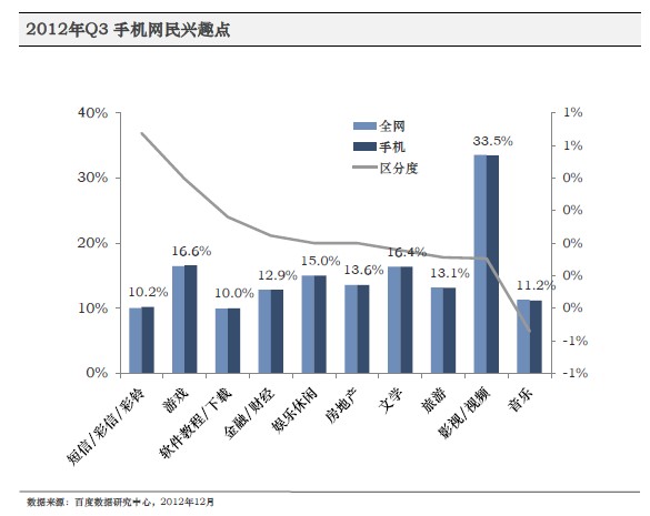与全体网民相比,手机网民在短信/彩信/彩铃方面的兴趣更高。