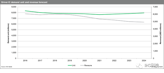 液晶电视、桌面显示器、笔记本电脑、平板电脑、智能手机和其他主要应用的显示模块需求已达到饱和,显示驱动IC需求将持续下降直至2021年。然而,随着8K电视面板的出货量攀升,驱动IC需求也将开始增加,2024年8K电视面板的出货量预计增至1000万台。即便如此,由于中国企业在市场上的投资更为积极,这将推动价格进一步走低,驱动IC营收将继续下滑。