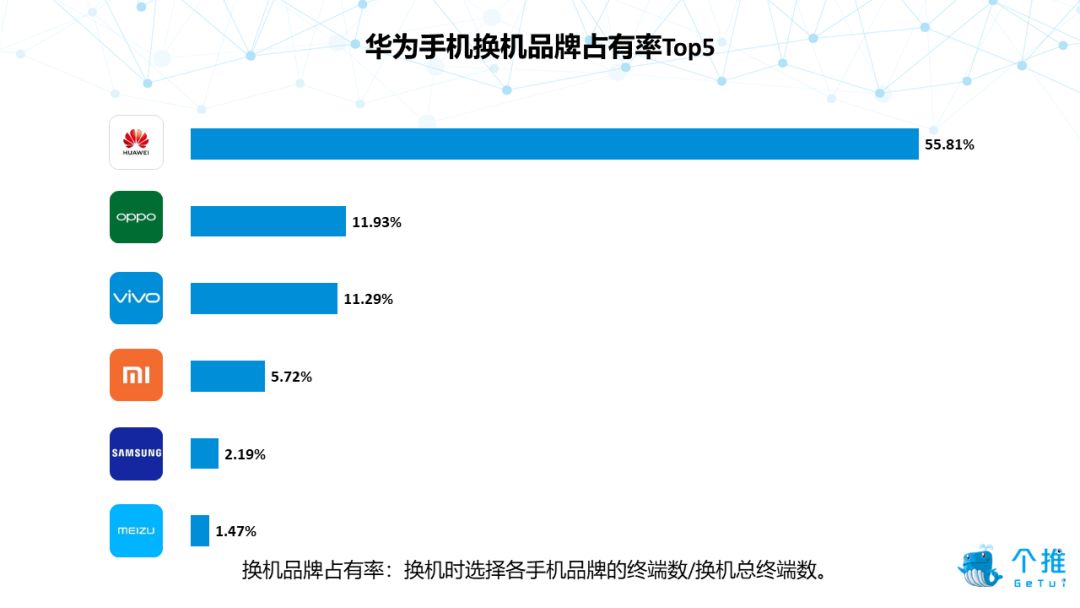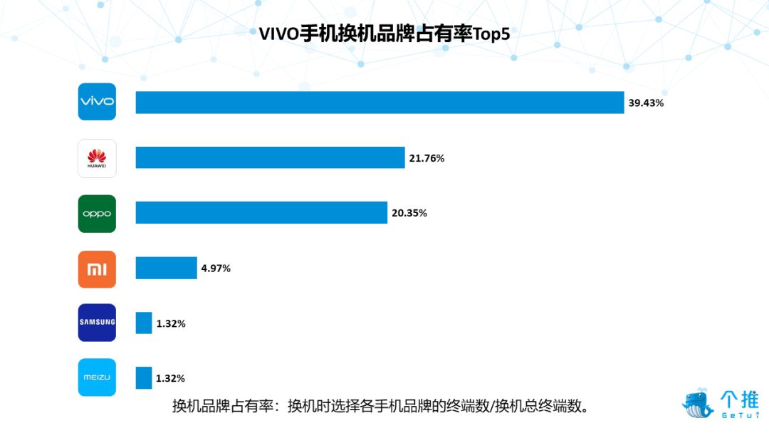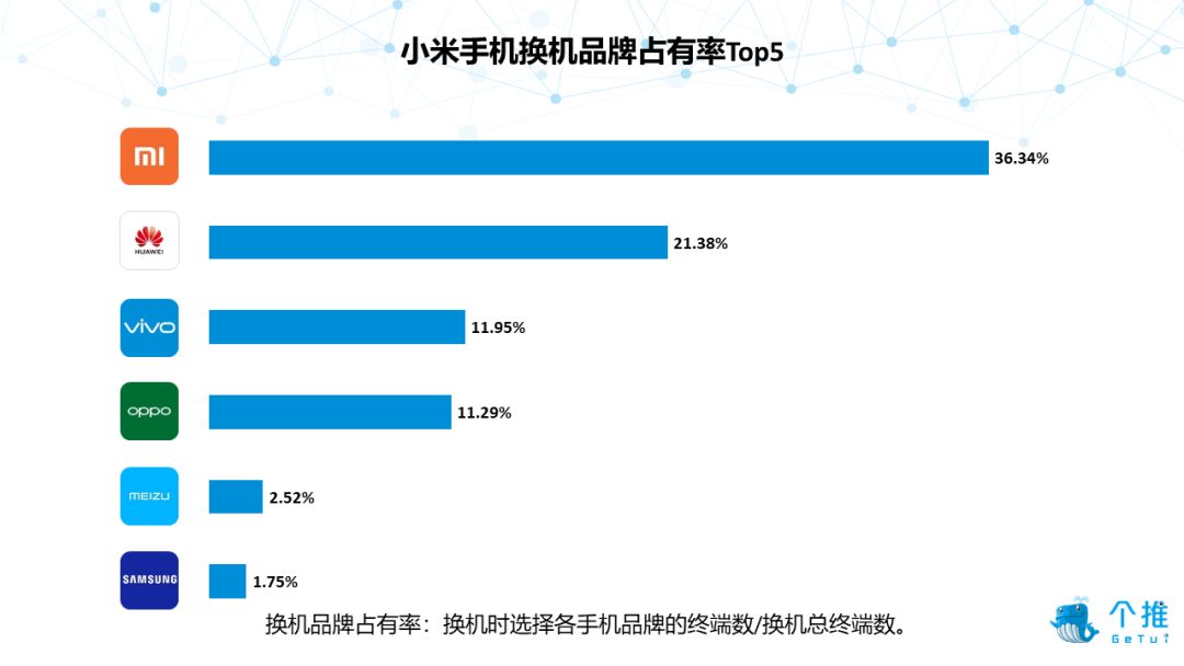 - 品牌忠诚度:各手机品牌换机用户中,换机时仍选择该手机品牌的用户占比;