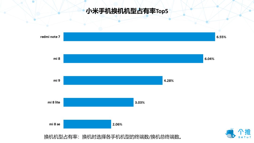 - 换机机型占有率:换机时选择各手机机型的终端数/换机总终端数;