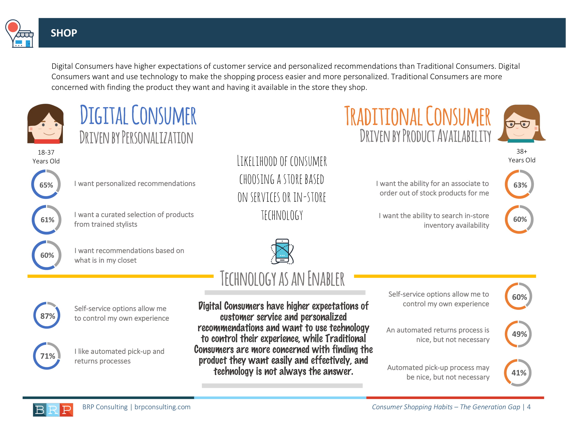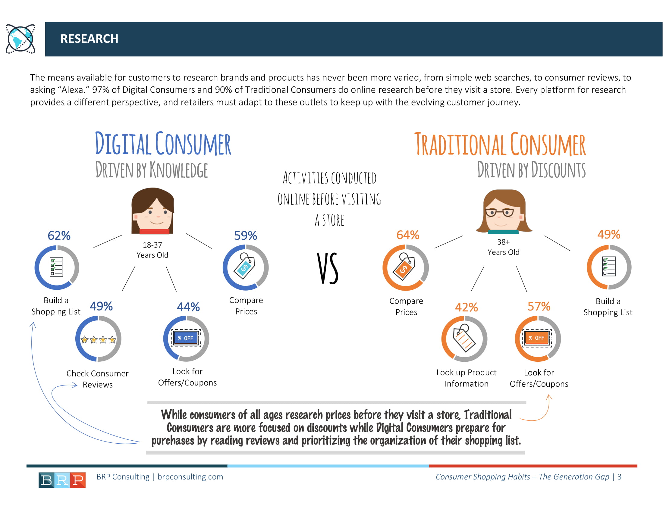 BRP的一份新报告显示,网络消费者(18-37岁)和传统消费者(38岁以上)在购物行为上存在明显的差异。