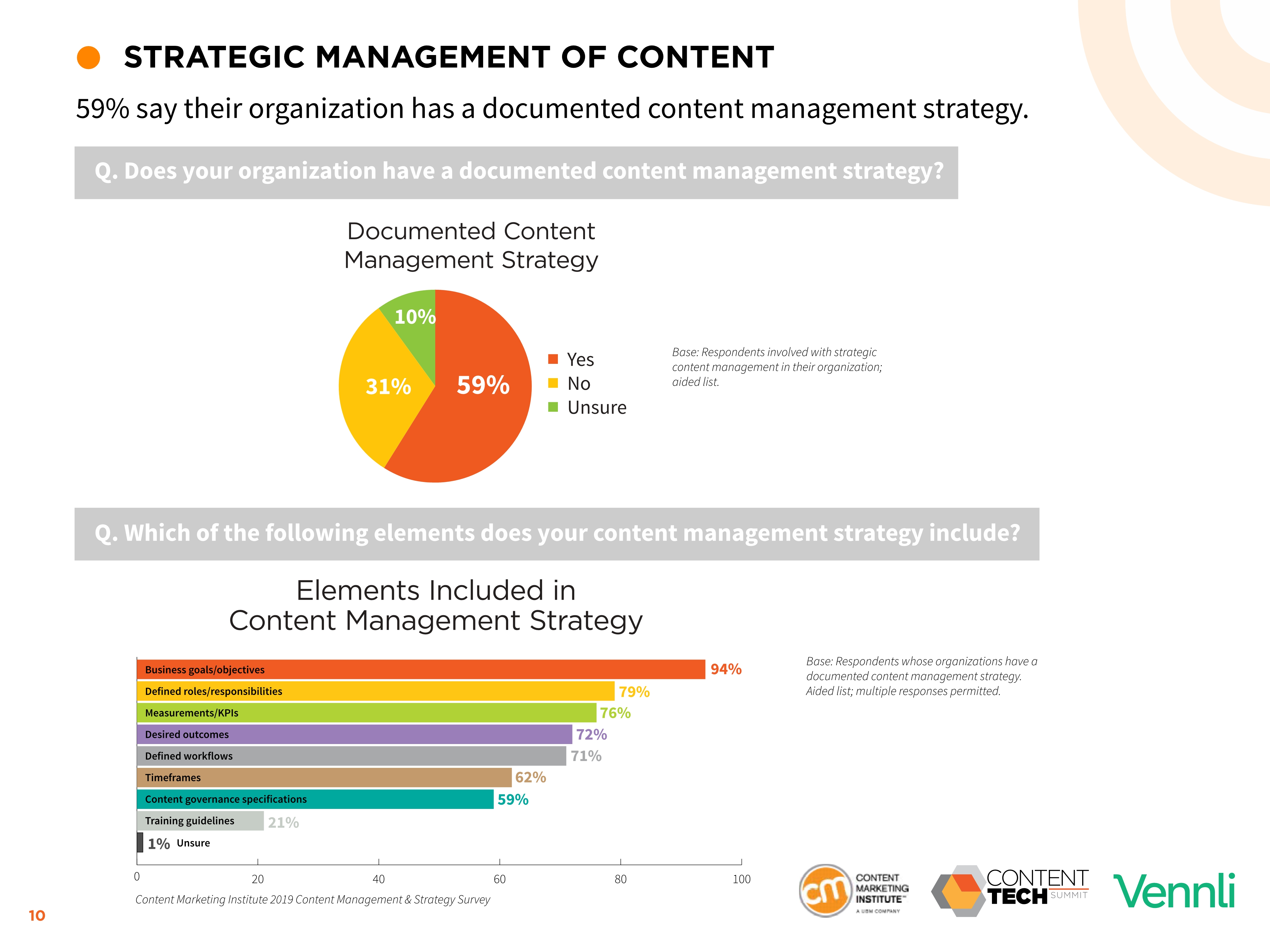 59%的受访者说他们的企业有文档化的内容管理战略。