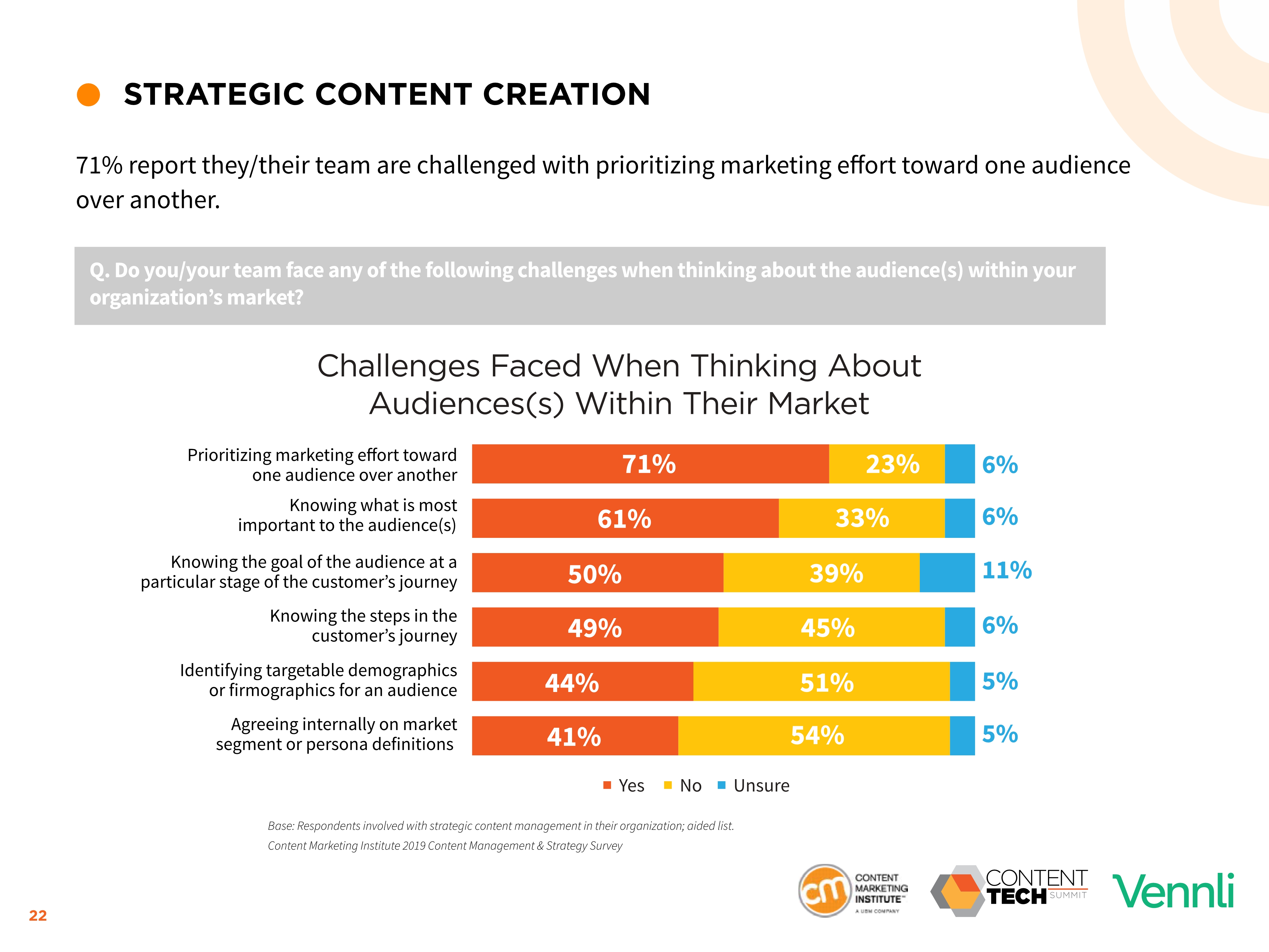 没参与战略性工作的受访者中,只有45%已经具备了内容性能分析的能力,而在进行战略性工作的企业中有2/3(64%)这么做。