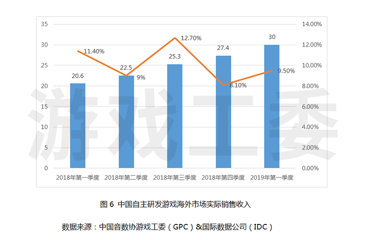 报告显示,中国自主研发游戏实际销售收入占比呈波动上升趋势,从2018第一季度的76.0%上涨到今年第一季度的77.0%,相比2018年第四季度占比有所下降,但依旧保持市场收入的主导地位。