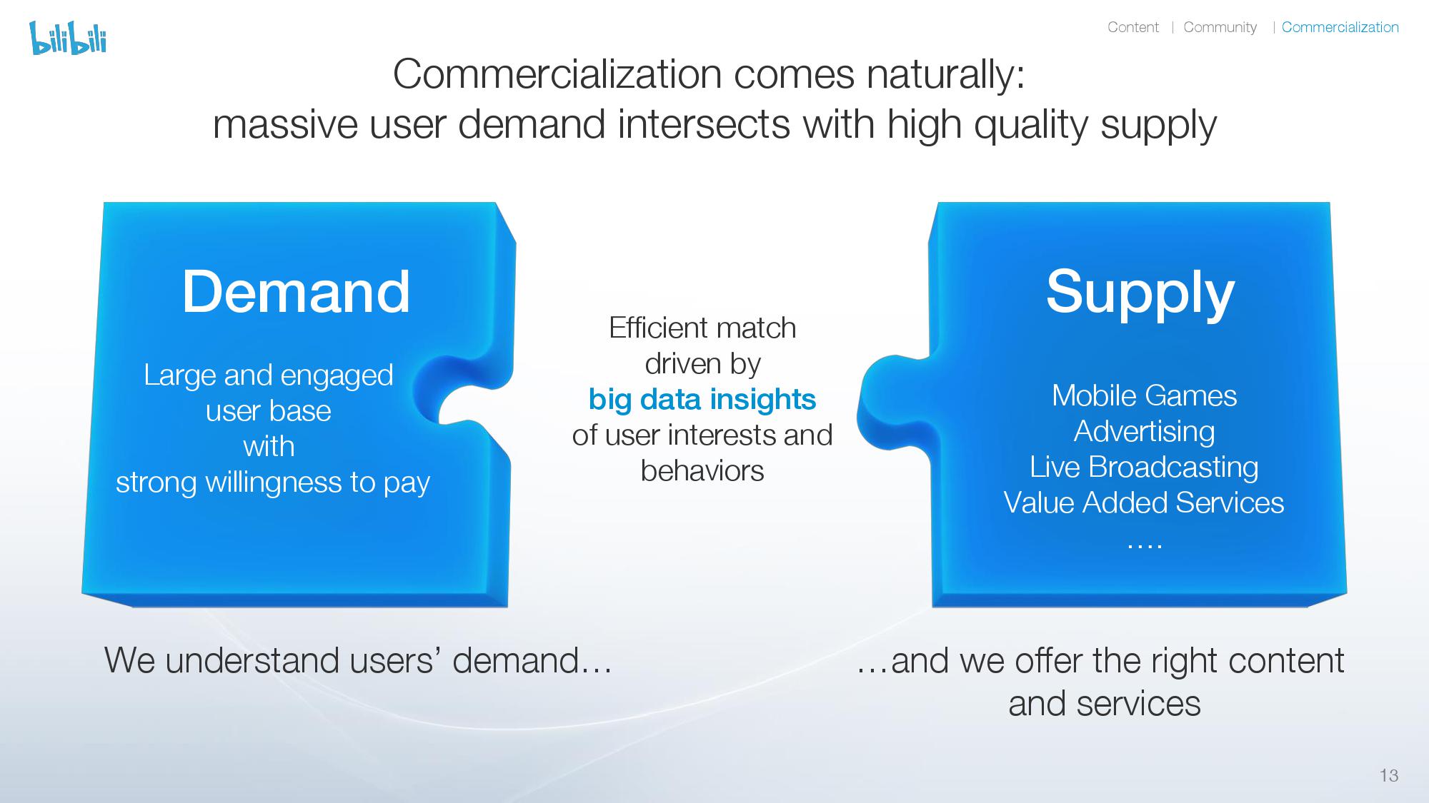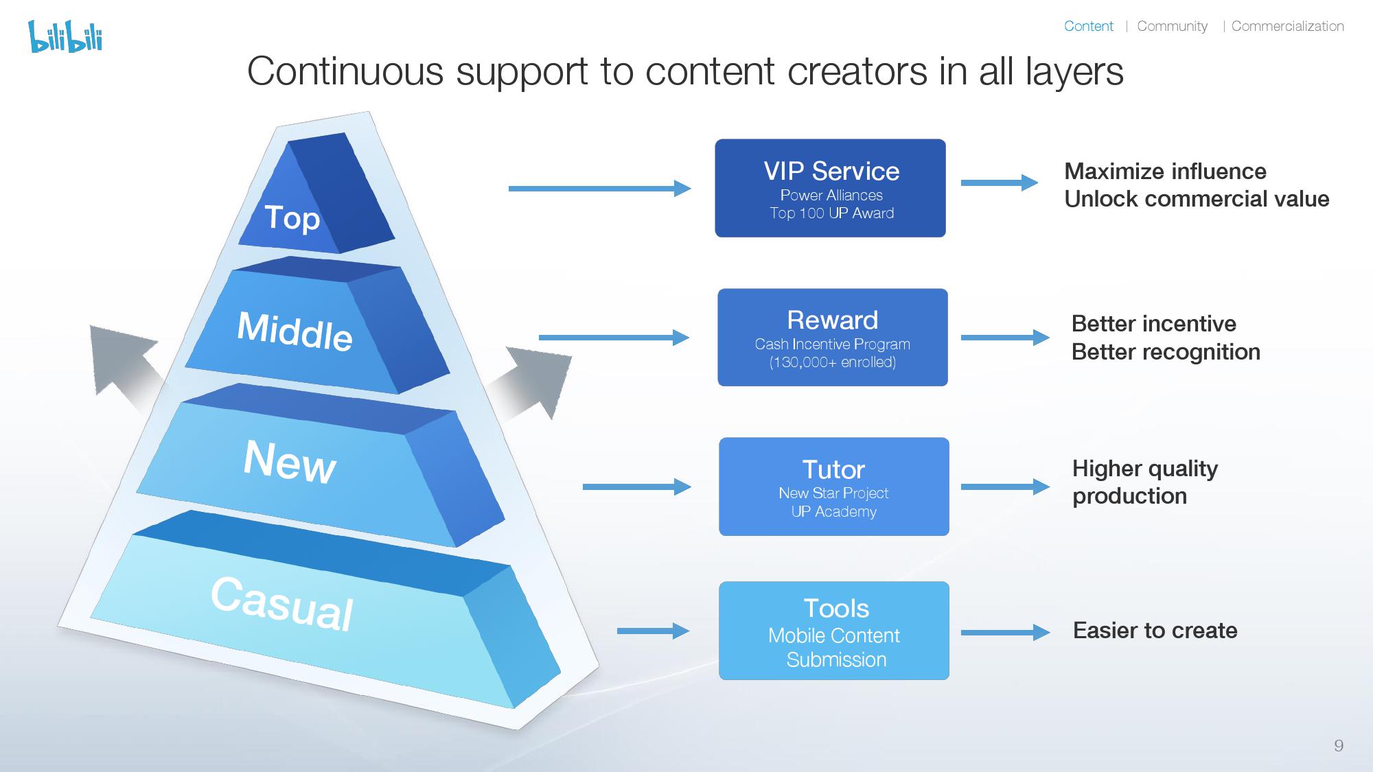 在2018年四季度,B站分别与腾讯、阿里巴巴达成战略级合作,目前B站与双方的合作正处于稳步推进中。与巨头的携手不仅强化了B站商业化能力,也进一步扩大其在内容领域的优势。