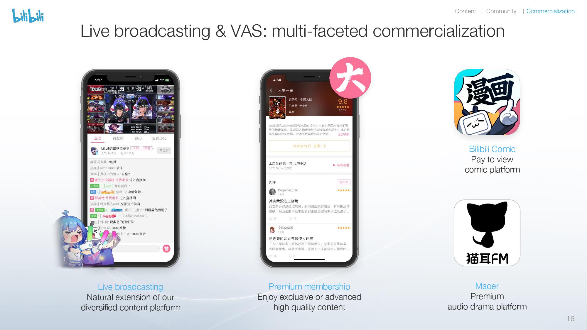 2018年11月,B站正式推出了第二款独立应用“哔哩哔哩漫画”;2018年12月,B站又完成了对音频社区“猫耳FM”多数股权的收购,两款细分领域产品将在挖掘用户付费潜力方面发挥日益重要的作用。同时在今年3月,B站宣布与索尼旗下Funimation在动画内容及版权领域达成战略合作,进一步构筑竞争壁垒。