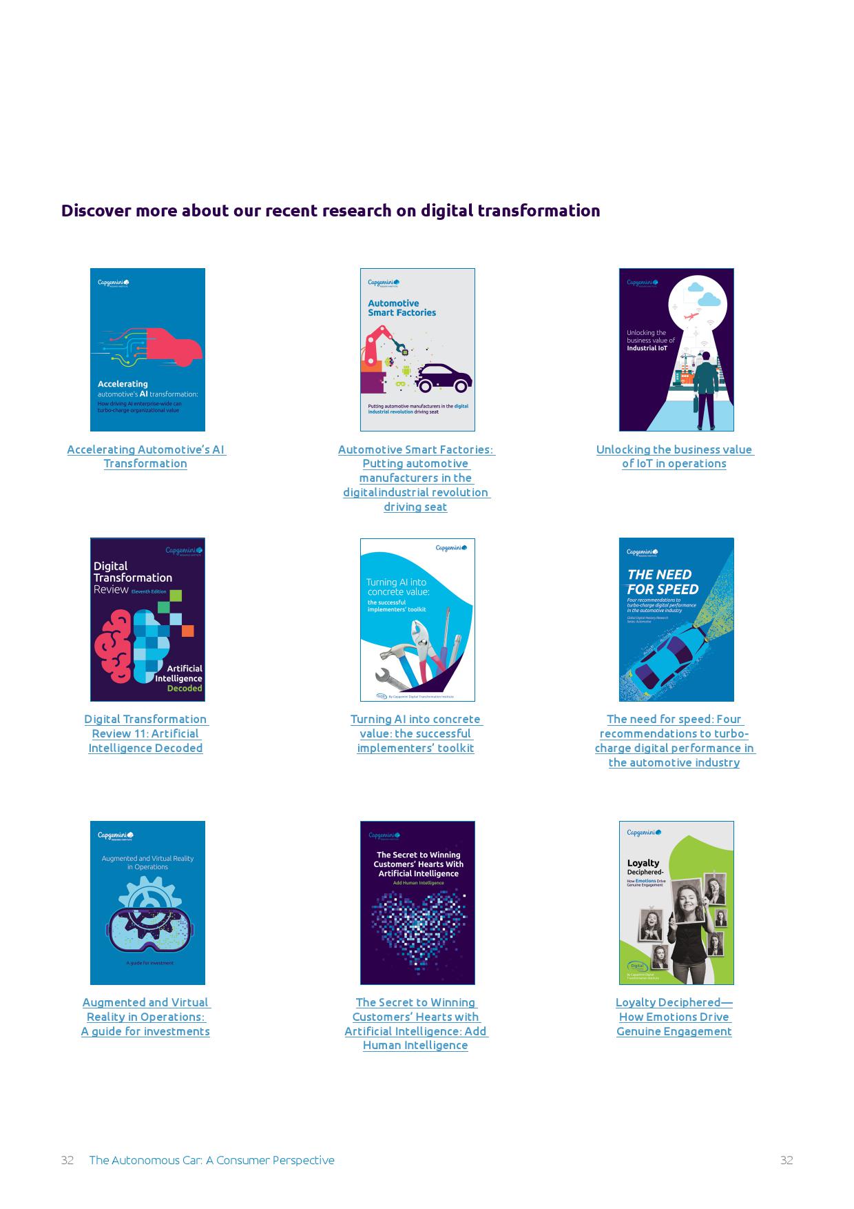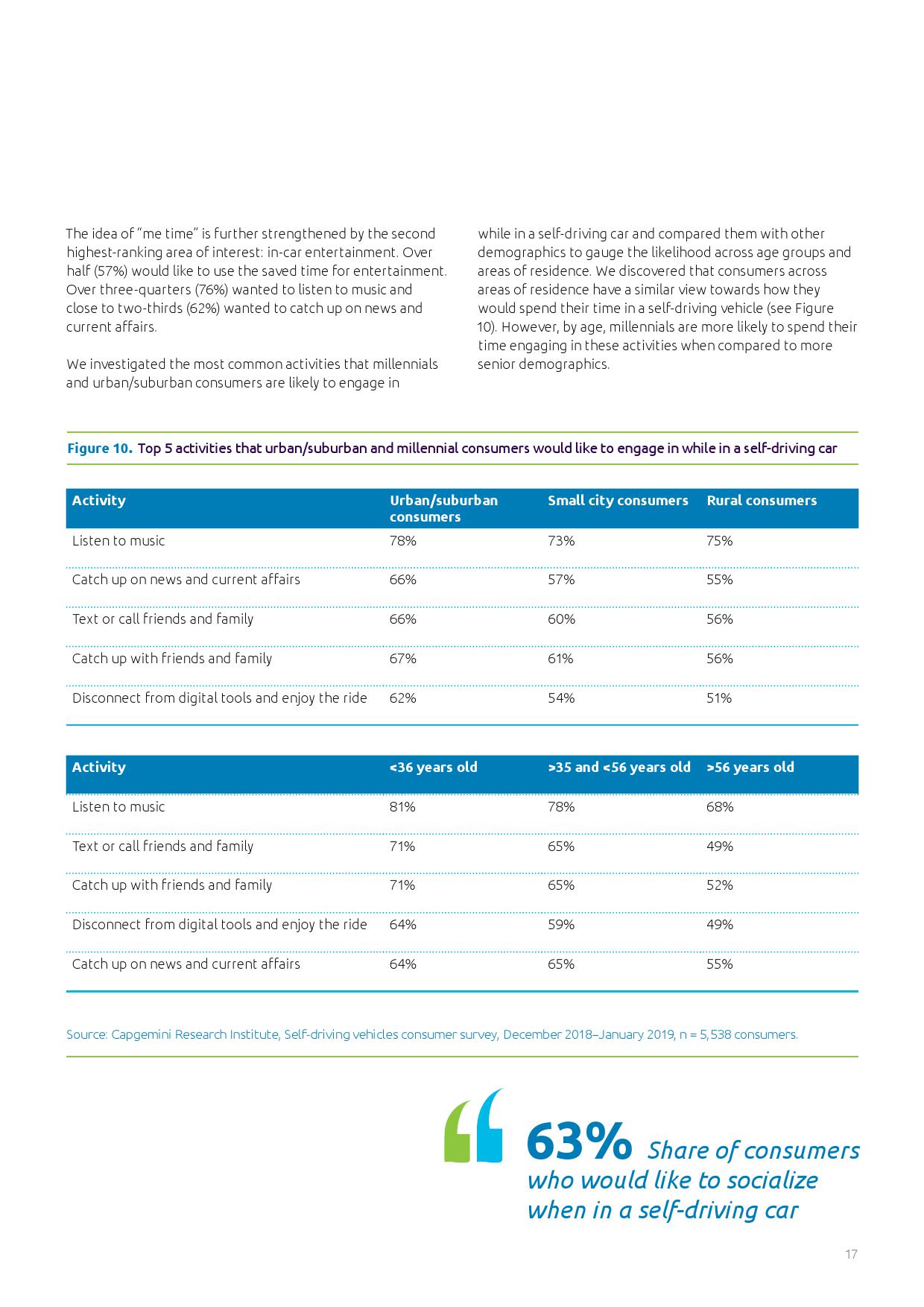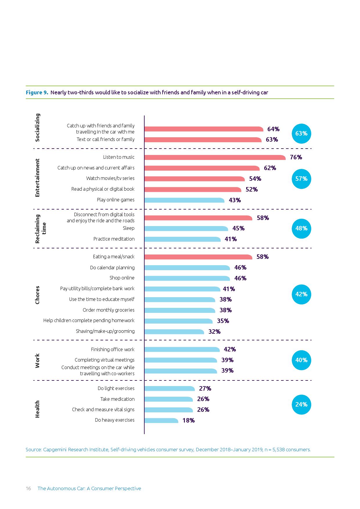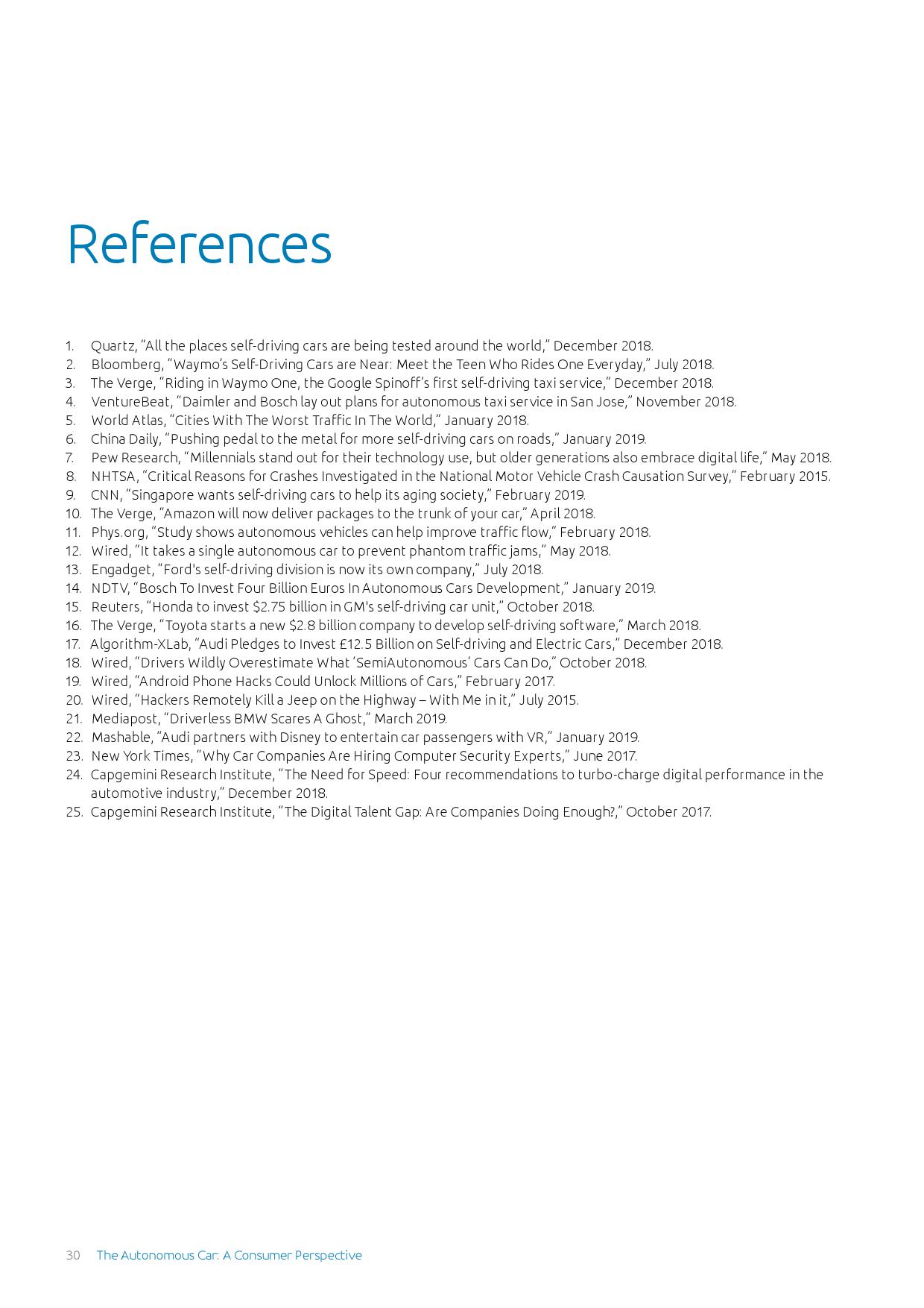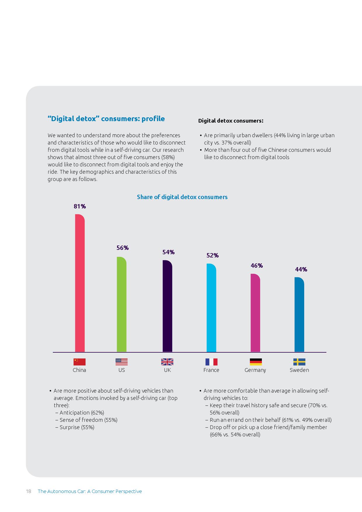 Capgemini全球汽车业务负责人 Markus Winkler :”我们的报告显示,潜在自动化驾驶汽车用户对这一产品持有非常乐观和兴奋的态度。到目前为止,多数讨论都集中在无人驾驶汽车的技术发展上。因此乘客们看到该技术带来的潜在好处,并产生共鸣。这极大地鼓舞了我们。客户对车内体验的期望不仅影响汽车行业,还会影响媒体、娱乐、零售、医疗等其他行业,从而为大量的行业协作业务机会铺平道路。不过,目前仍然存在一定的不确定性和担忧。汽车厂商在市场推广自动化驾驶汽车时,必须考虑到未来客户的期望和担忧,同时将自己的业务从产品导向转为服务和客户导向。”