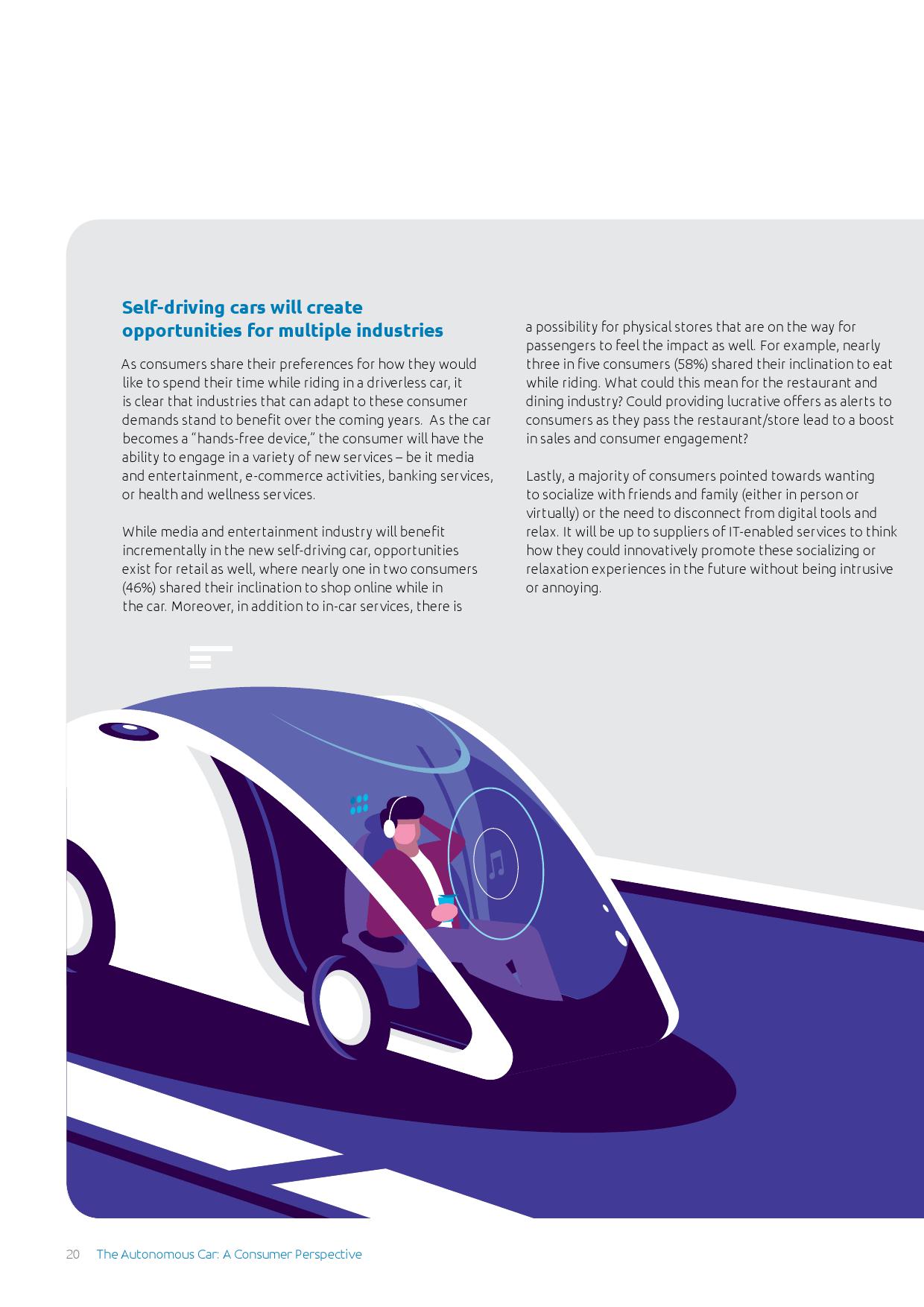 打造服务生态系统:在消费者对于无人驾驶汽车的期望中,他们重点强调汽车厂商需要拓展面向消费者的服务范围。消费者期待更多样的车内体验,涵盖娱乐、工作与健康服务。实现要求并将其转化为商机,需要汽车厂商与新科技、新内容、新商业伙伴合作,共同打造一个完整的服务生态系统。