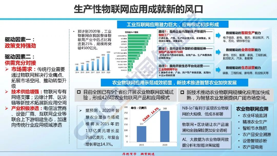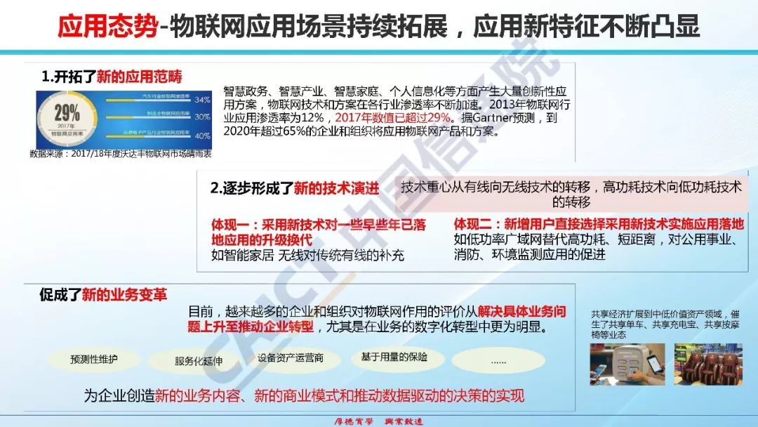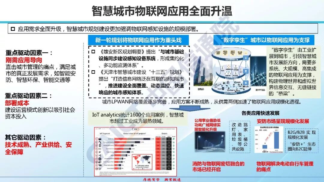 中国信通院:数字浪潮下的物联网和工业互联网发展态势 核心观点:当前全球信息技术革命正在引领新一轮产业变革,物联网,工业互联网,卫星互联网,边缘计算,感知网络等ICT技术与行业发展的融合已步入从局部扩散向全面渗透、从生产变革到模式创新的新阶段。随着技术加快突破和需求扩大升级,物联网发展条件和技术构成等方面已发生重大变化,正在进入“跨界融合、集成创新、规模应用、生态加速”的产业快速成长期,呈现“万物互联、泛在智能、平台服务、数据变现”的新特点。 11 来自: 中国信息通信研究院CAICT 更多阅读:中国信通院:2022年移动物联网发展报告中国信通院:2022中国“5G+工业互联网”发展成效评估报告中国信通院:2025年我国5G基站总数443.9万个,普及率75%Surfshark:物联网设备数据收集排行榜Counterpoint:2024年第三季度北美蜂窝物联网模块出货量同比下降16%Counterpoint:2030年全球卫星物联网数量将达到4100万个Counterpoint:2030年物联网4G Cat 1 bis将取代4G Cat 1Counterpoint:2030年使用eSIM的物联网连接将达到22亿个5G RedCap:物联网持续增长的关键IDC:2022年全球物联网总支出规模约为7,300亿美元2023年企业物联网调查:英国市场Counterpoint:全球蜂窝物联网通信连接规模将于2030年超过60亿IDC:2023年全球物联网支出预计将增长10.6%Omdia:预计物联网设备总出货量将在2030年超越180亿IDC:预计2022年中国物联网连接规模达56亿个