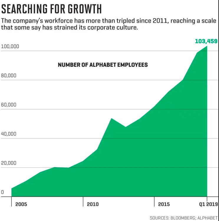 谷歌及其母公司Alphabet已经拥有逾10万名员工,高管们承认,该公司正在努力平衡其规模与维护员工话语权等基本原则之间的关系。谷歌高级副总裁Jen Fitzpatrick表示:“如果没有这种企业文化,你就无法实现这种增长。”他也是以CEO桑达尔·皮采(Sundar Pichai)为首的高管团队的一员。不过他补充说,维权员工人数虽少,但声音响亮,他们的意见并不代表全体员工的意见。