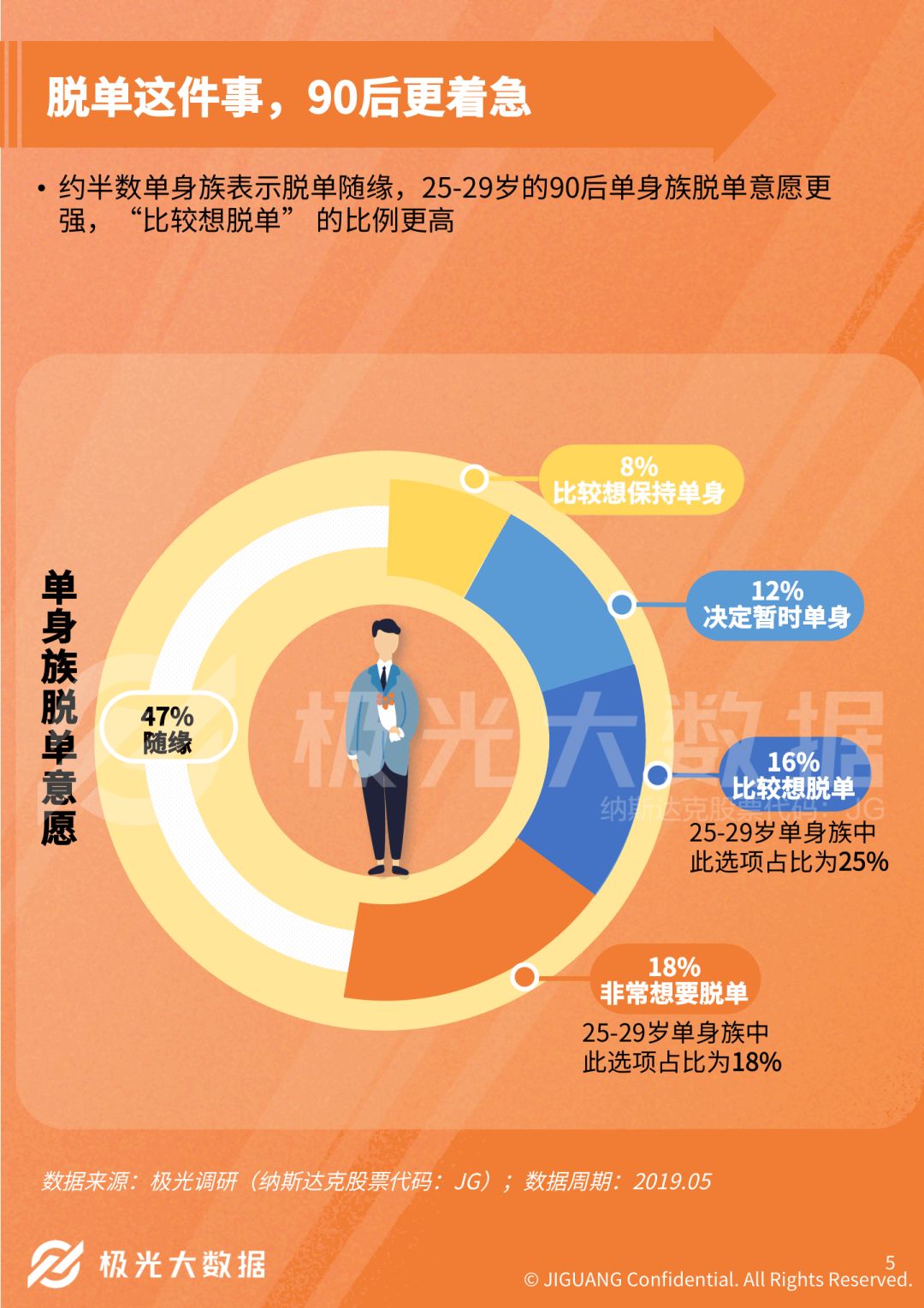 - 约半数单身族表示脱单随缘,25-29岁的单身族更着急脱单