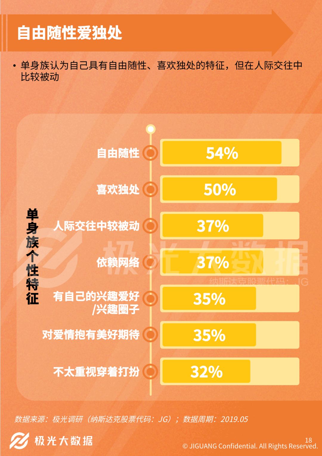 极光大数据(Aurora Mobile, NASDAQ: JG) 在520这个有着特殊含义的日子,针对18-34岁的单身群体进行数据调研与分析,推出《2019单身人群专题研究报告》,从单身原因、婚恋期待以及单身生活状态等方面剖析单身青年的情感状态。看完本文,你会明白单身青年们的需求与期待。