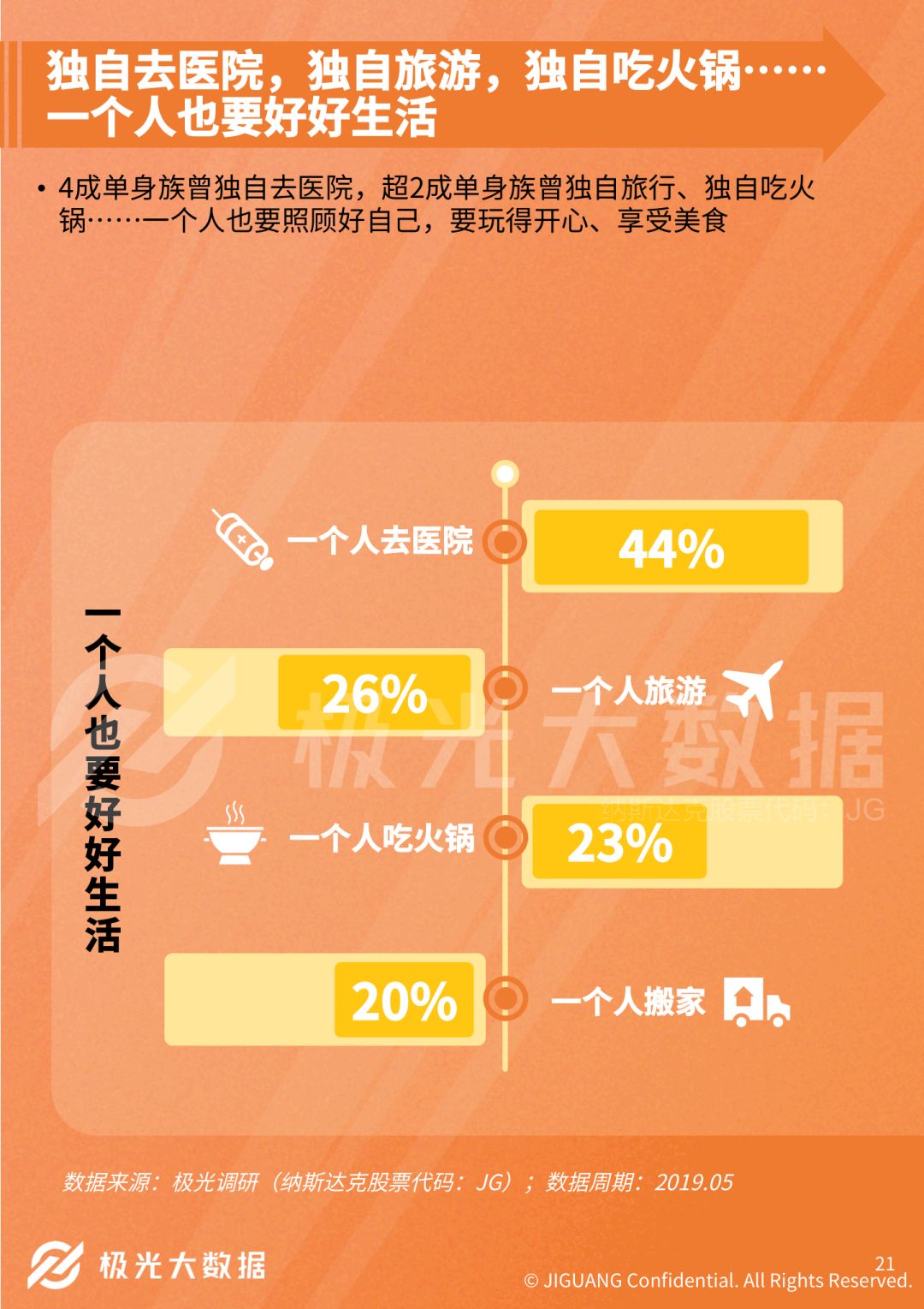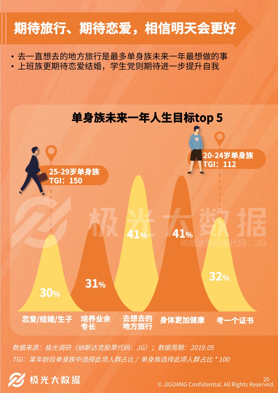- 单身也要快乐旅行,半数单身族过去一年有过3天及以上长线游经历,4成单身族期待未来一年能去想去的地方旅游。