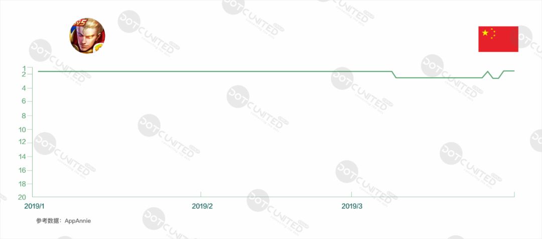 《王者荣耀》2015 年 10 月发行至今,在全球 APP Store 和 Google Play 预估营收达到 45 亿美元,平均每天吸金 370 万美元,总下载估算 2.95 亿次。2019 年第一季度,《王者荣耀》在中国 iOS 榜单依旧保持稳定头部排名,寿命之久,吸金之强,另其他游戏不得望其项背。