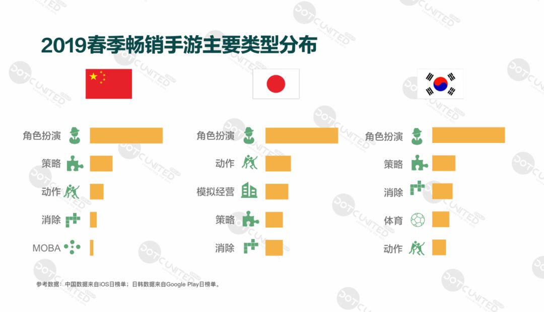 1、日韩两国的 ARPU 值在全球处于较高水平,本土用户在重度 RPG、策略类游戏多年熏陶下,对于中重度手游的接受程度非常高。但两国 RPG 游戏偏好不尽相同,日本 RPG 游戏存有西方基因,游戏主题和内容具有一定的世界性和哲学性,游戏多以日漫风为主。韩国玩家则对大型多人在线角色扮演(MMORPG)尤为喜欢,游戏多以本土知名端游 IP,以及中国风武侠、仙侠和官场、宫廷内容为主。