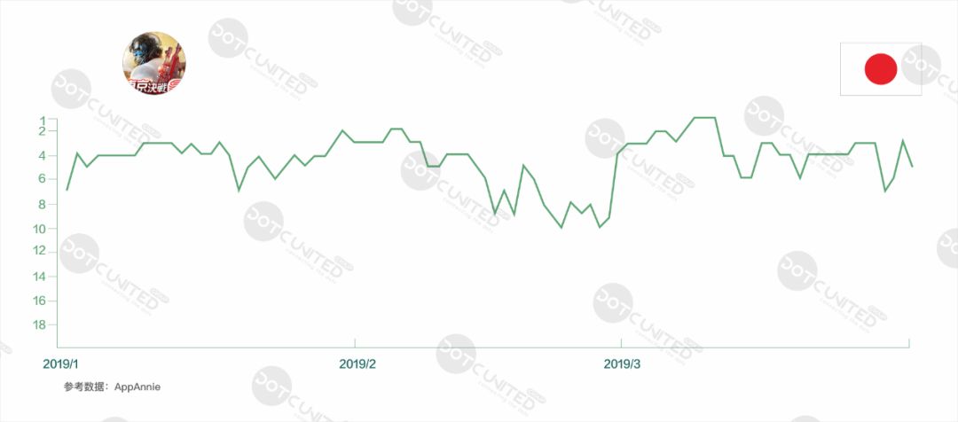 日本是网易 MOBA 手游《荒野行动》在全球累计下载和收入最高的国家。有数据显示,《荒野行动》全球收益的近 80% 都来自日本市场。日本吃鸡游戏市场小,同类产品稀缺,《荒野行动》在全球吃鸡热潮之际冲入日本市场之初便站稳了脚跟,加之其重视本土社交媒体宣传、联动本土知名 IP 合作、大力发展周边产品等,使得这款游戏以最快的速度引起日本年轻一代的关注与讨论,并在实力雄厚的日本市场存活长达两年之久,且从目前榜单排名来看,依然充满生命力,走势坚挺。