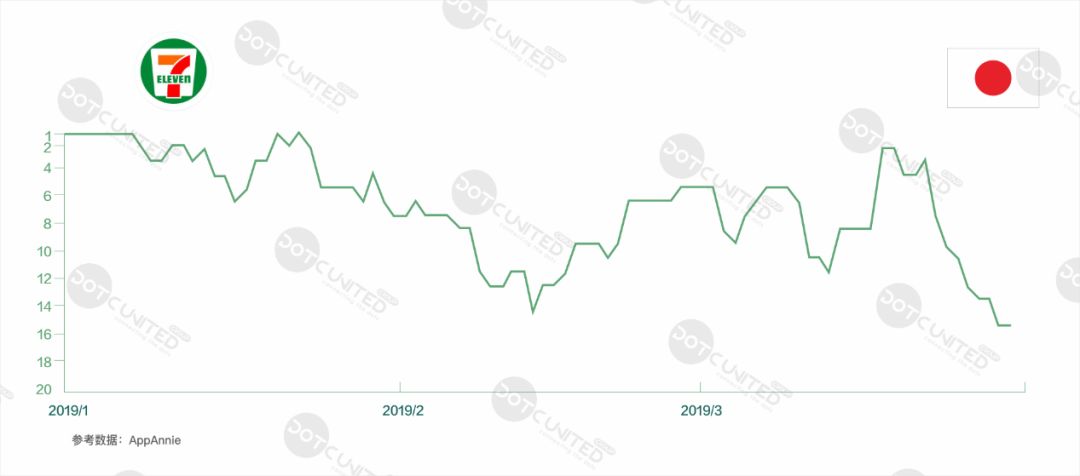 日本实体便利店密度极高,便利店从商品到服务无一不体现着独特的本土特色,某种程度上而言,便利店在日本已沉淀并衍生为一种特有的文化特征。虽然从 2019 年第一季度榜单排名走势看,该 APP 自今年初开始出现较明显下滑,但在第一季度仍然拿下了日本 iOS& Google Play 免费榜冠军。