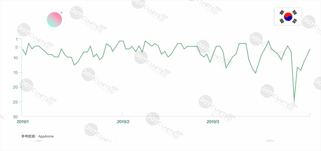 《SODA》是一款风靡日韩市场的美颜相机 APP ,其配备了 B612 咔叽和 Foodie 中最受欢迎的滤镜,备受年轻人的喜爱。2019 年第一季度,《SODA》在韩国 iOS 日免费榜基本保持在 TOP5 内,Google Play 日免费榜也基本保持在 TOP15 内,成绩斐然。国内开发商有优秀的美颜相机 APP 在韩国市场或有惊喜收获。