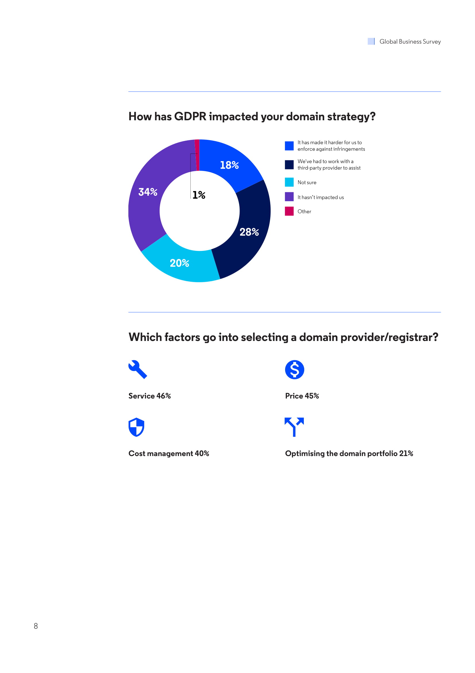 46%的品牌表示GDPR影响了他们的域名策略,其中18%的品牌发现更难对侵权行为采取行动。