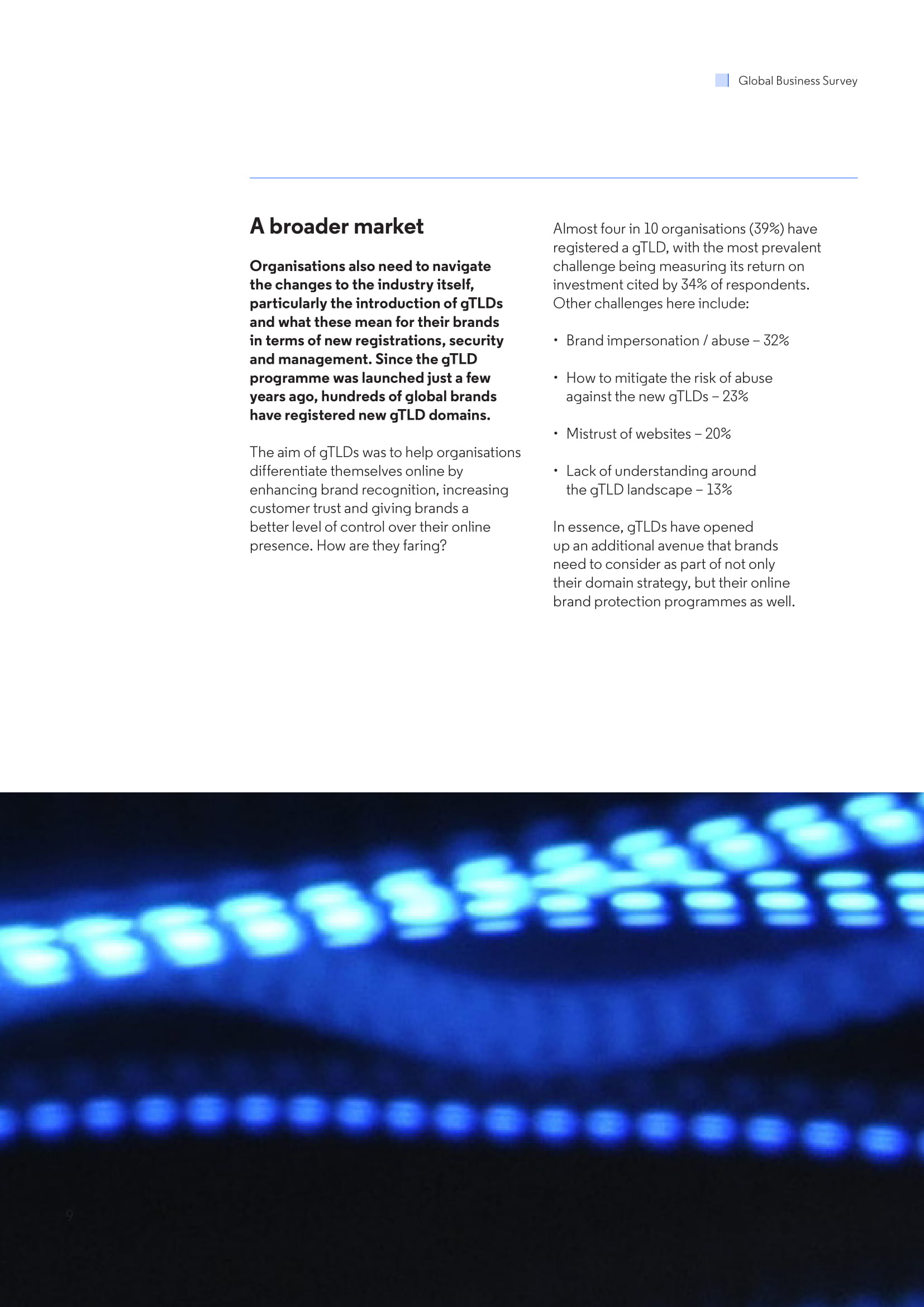 情况正在改变,变得更大和更复杂,39%的受访者注册了GTLD,其中32%的受访者经历过对其品牌的模仿和滥用。