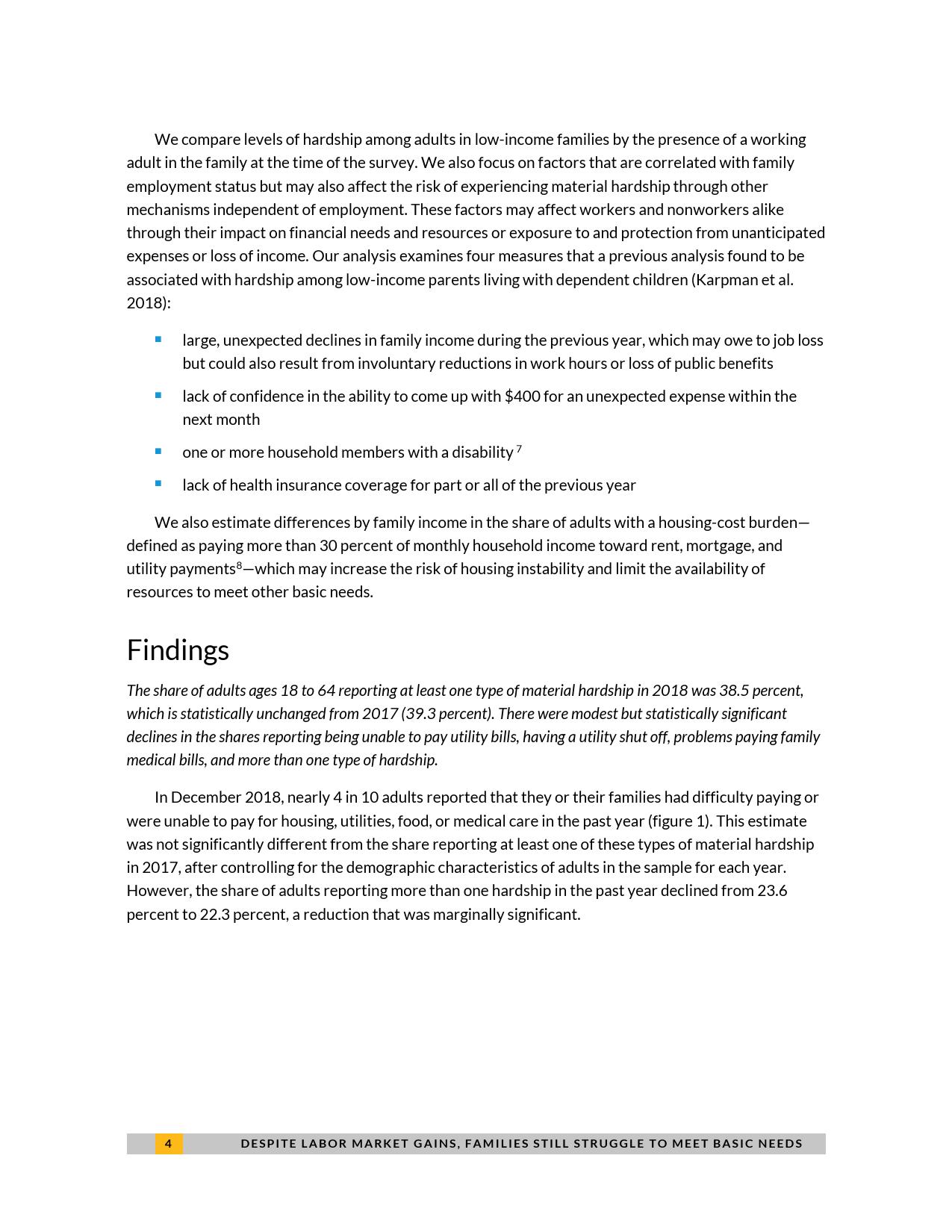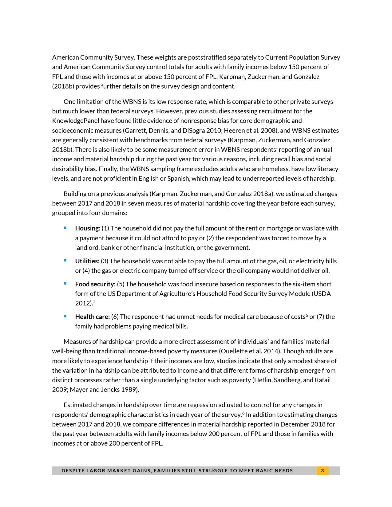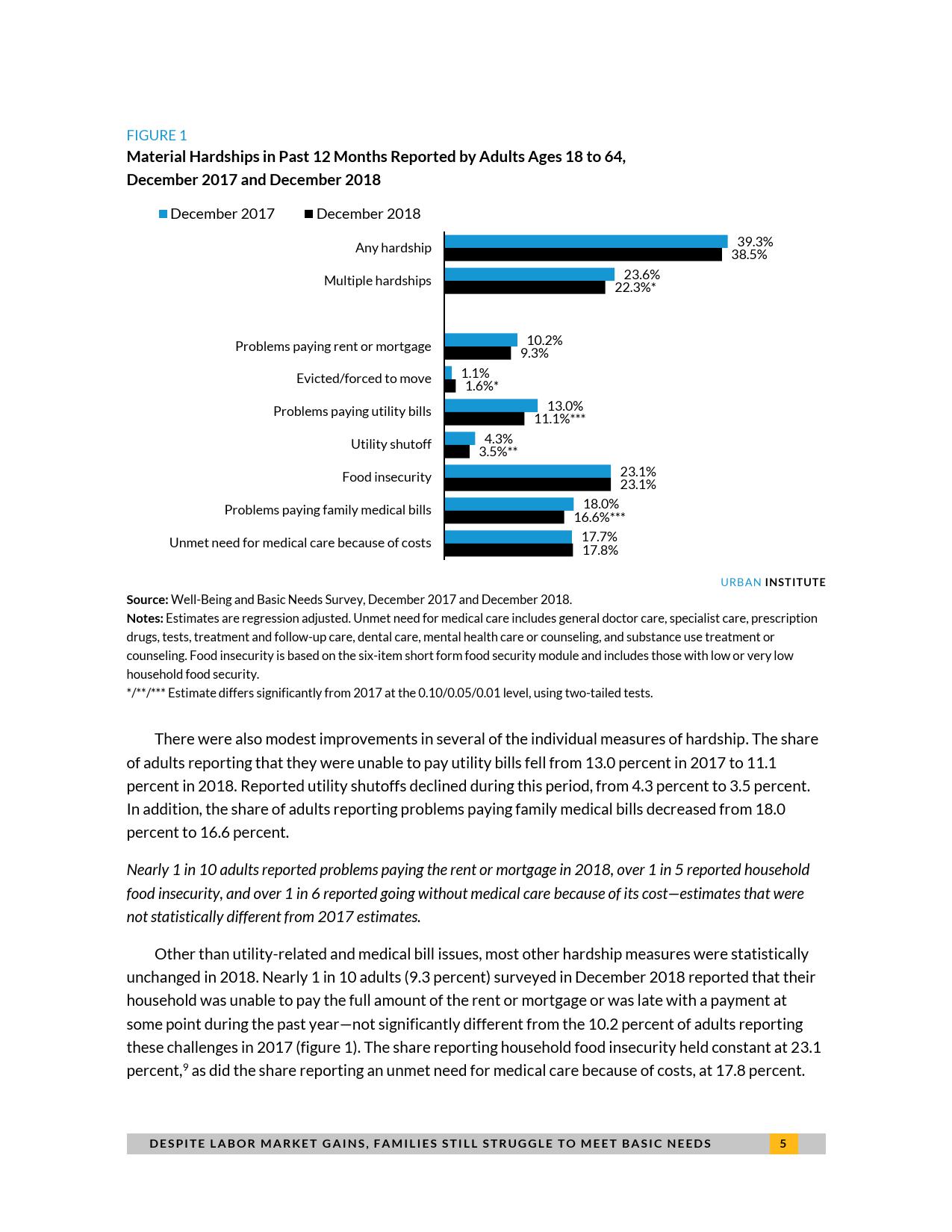 38.5%的人在生活基本支出上至少经历过某一个方面的“物质困难(material hardship)”,而22.3%的人经历过不止一种困难;