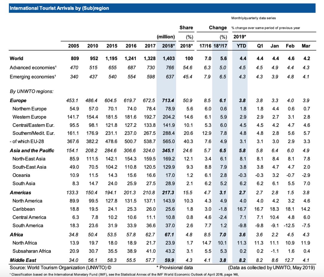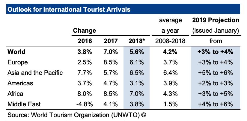 UNWTO预计2019年国际旅游将增长3%至4%。