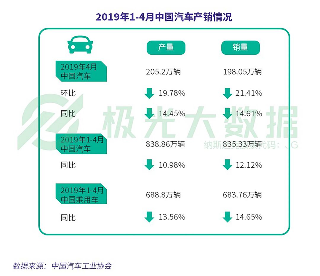2019年1-4月,国内汽车整体产销数据均出现下滑,特别是乘用车领域