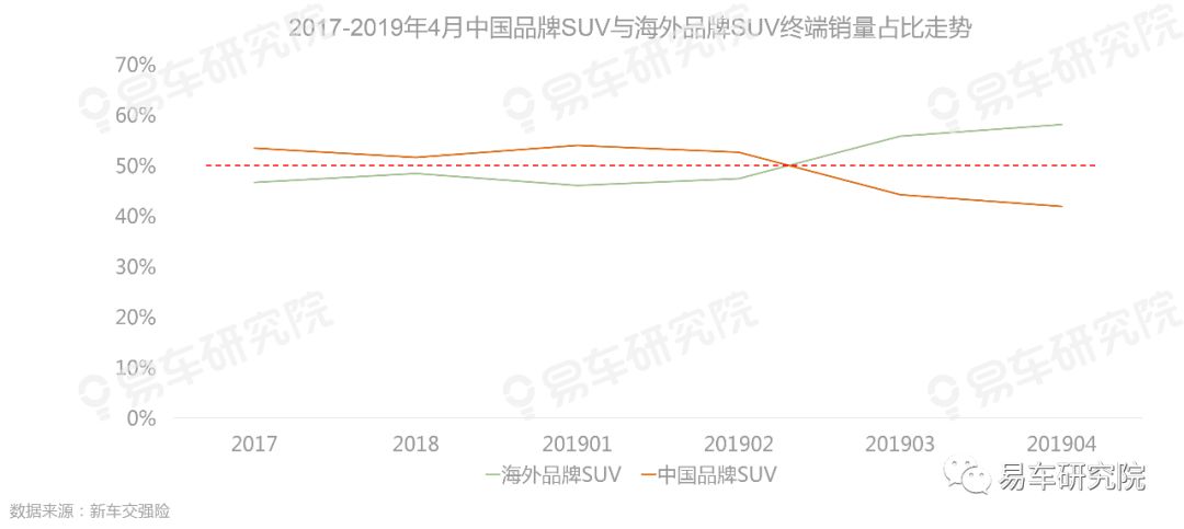 2019年3-4月海外品牌SUV终端销量占比超越中国品牌