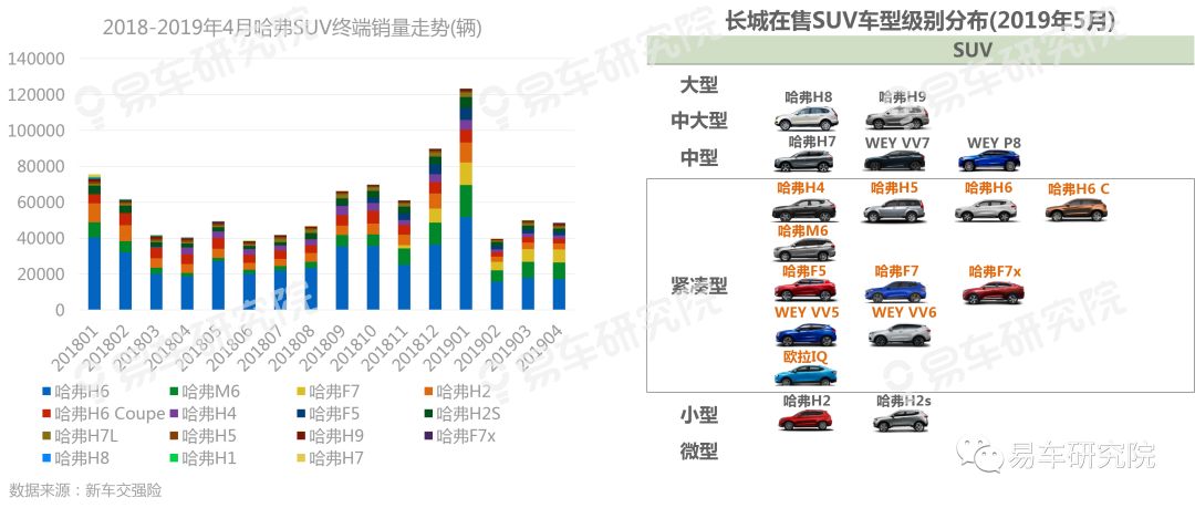 2019年4月哈弗终端销量痛失SUV领军地位,但聚焦紧凑级与M、F系上量,助哈弗稳住阵脚,后发制人取决于WEY