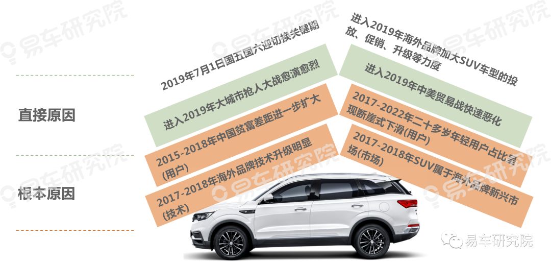 直接原因:2019年4月起中美贸易战快速恶化,对以工薪阶层用户为主的中国品牌SUV形成较大威胁