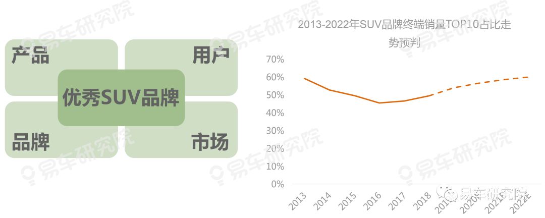 SUV本质之争,不是海外品牌主导SUV车市,而是优秀车企主导,不是中国品牌倒下,而是弱势车企倒下!“中国品牌”并非哈弗、吉利等的护身符,中国品牌SUV能否突出重围,完全取决于自身实力。2019-2022年谁能更好争取30-40岁年龄段用户的认可与支持,谁将笑傲江湖。2022年SUV品牌终端销量TOP10的集中度有望突破60%,SUV车市的优胜劣汰将持续推进。