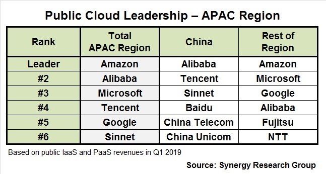 根据Synergy Research的新数据,中国云提供商在亚太地区领先的云提供商排名中占据重要地位。虽然亚马逊在该地区保持第一的位置,但前六名中有三家是中国公司。阿里巴巴、腾讯和新星保持其领先位置,而百度则没有进入前六。