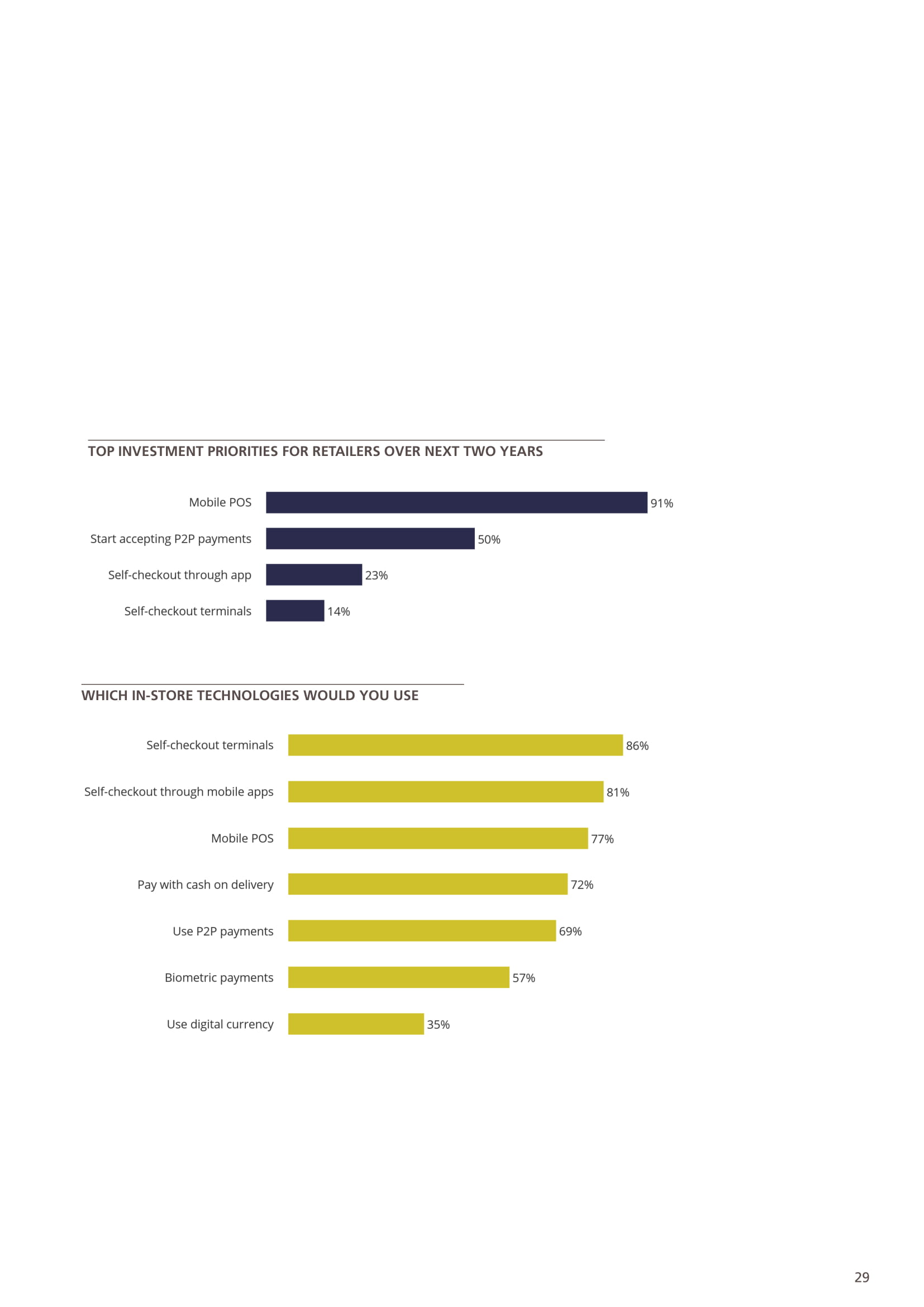 消费者最希望使用的付款技术是自助结账技术和移动POS。