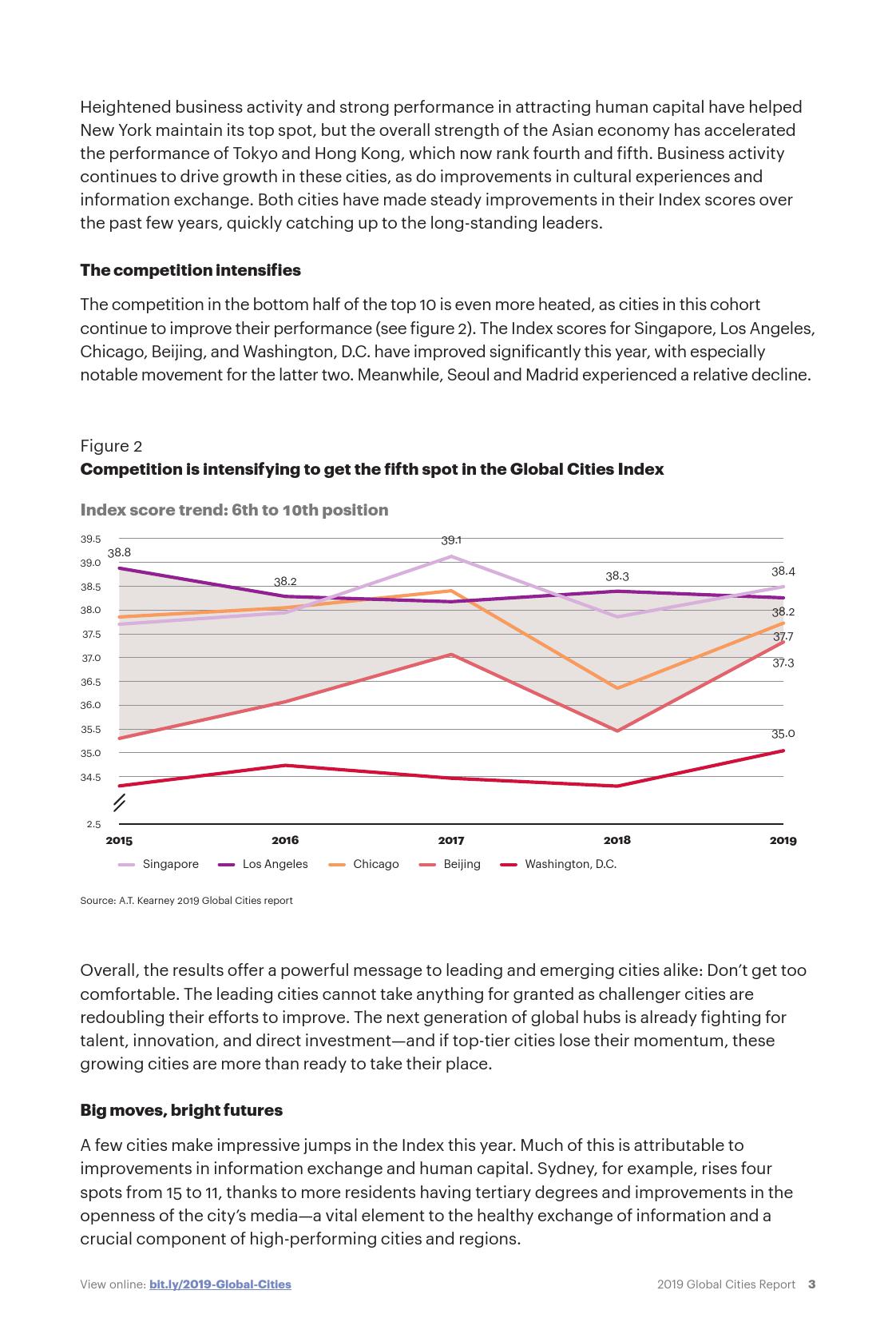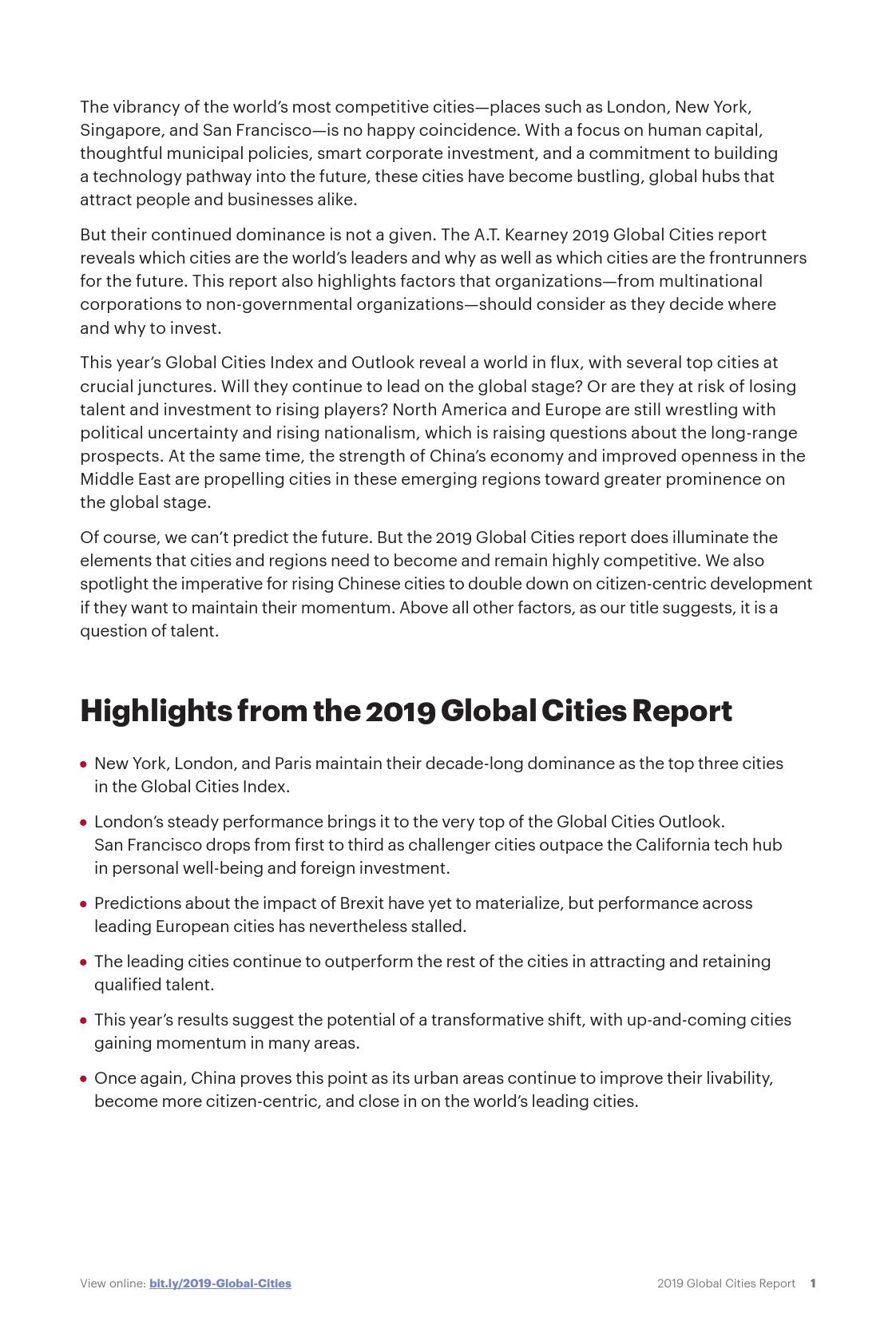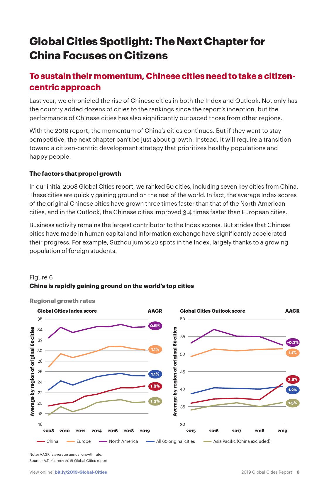 “2019年全球城市指数报告显示,全球领先城市之间对人力资本和企业投资的竞争依然激烈,新兴城市和地区正在与长期领先的城市和地区展开竞争,”科尔尼公司资深合伙人,本报告发起人及作者之一Mike Hales指出。