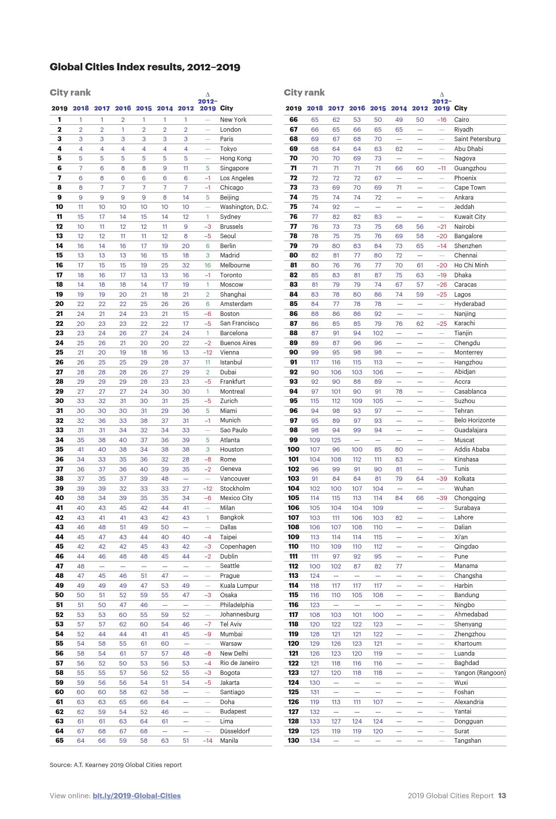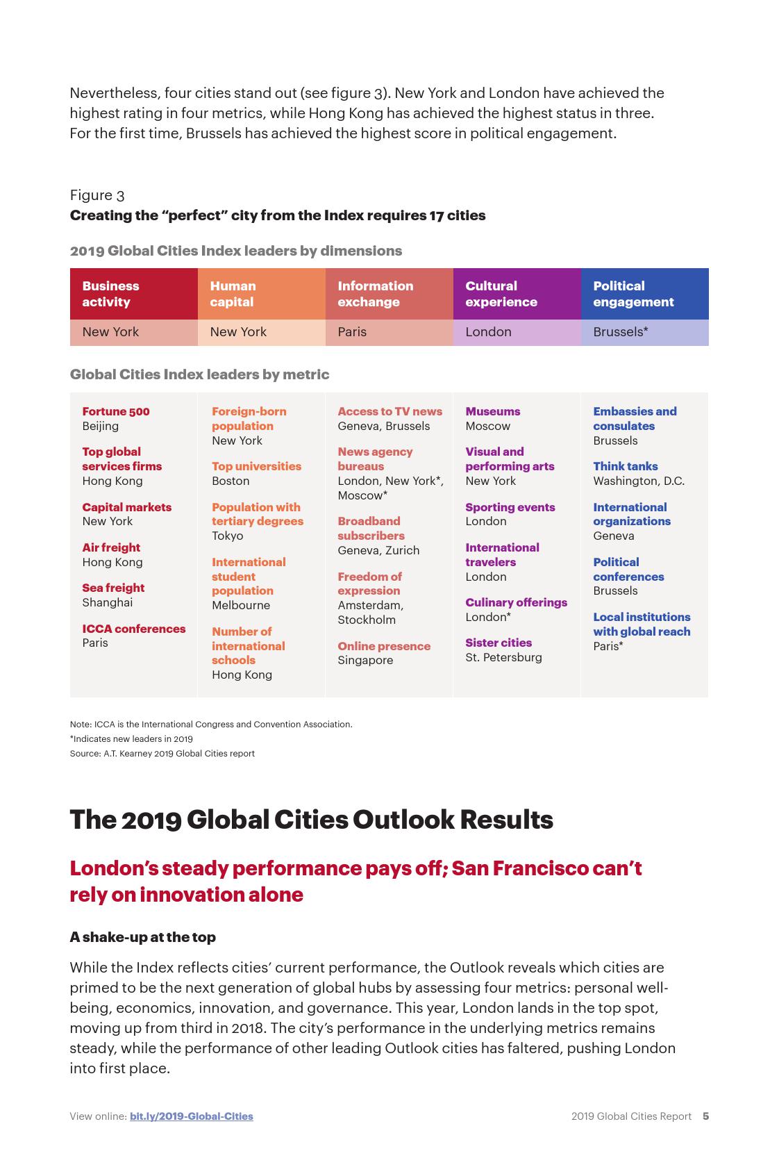 《全球城市综合排名》围绕商业活动、人力资本、信息交流、文化体验和政治事务五个维度评选出当前全球最具竞争力的城市。今年是纽约连续第三年保持榜首地位,这得益于其商业活动得分的提高和在人力资本吸纳上的强劲表现。
