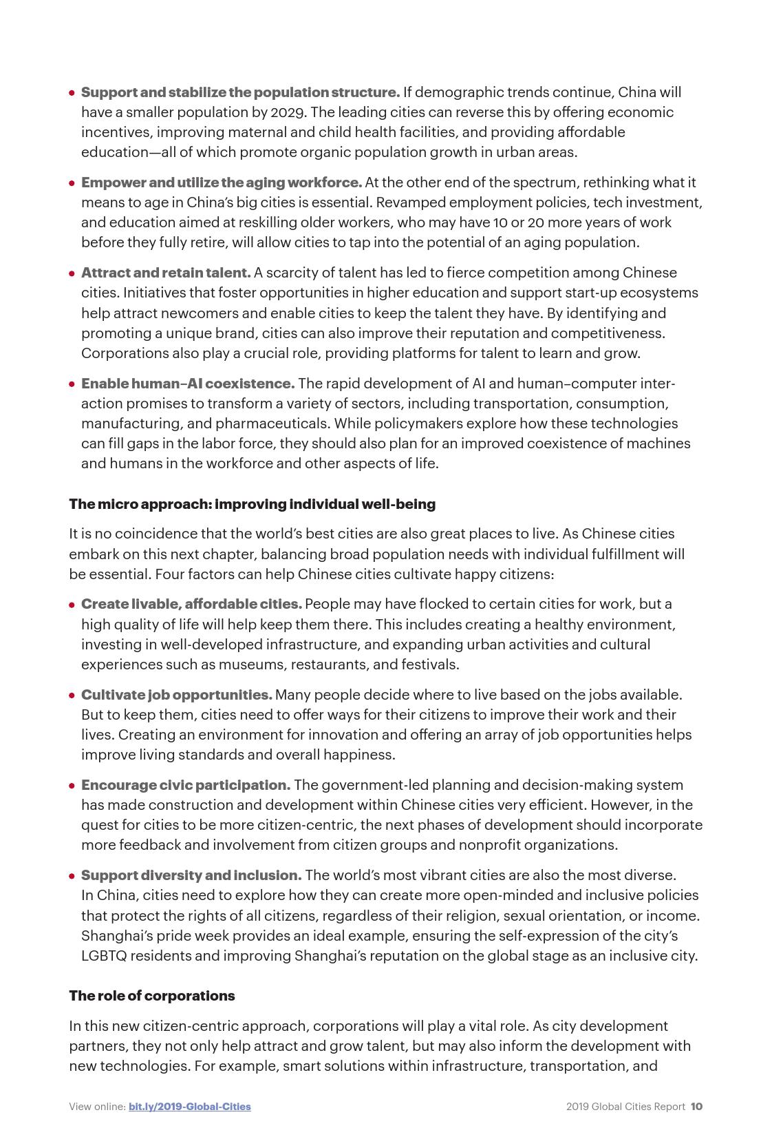然而,随着整体城市化进程放缓,城市的发展不能只谈增长,中国城市要想建立持续的竞争力,揭开崛起新篇章,应“以市民为中心”,重点推动人口结构健康发展和市民个人幸福感提升,吸引更多人才和外商投资。
