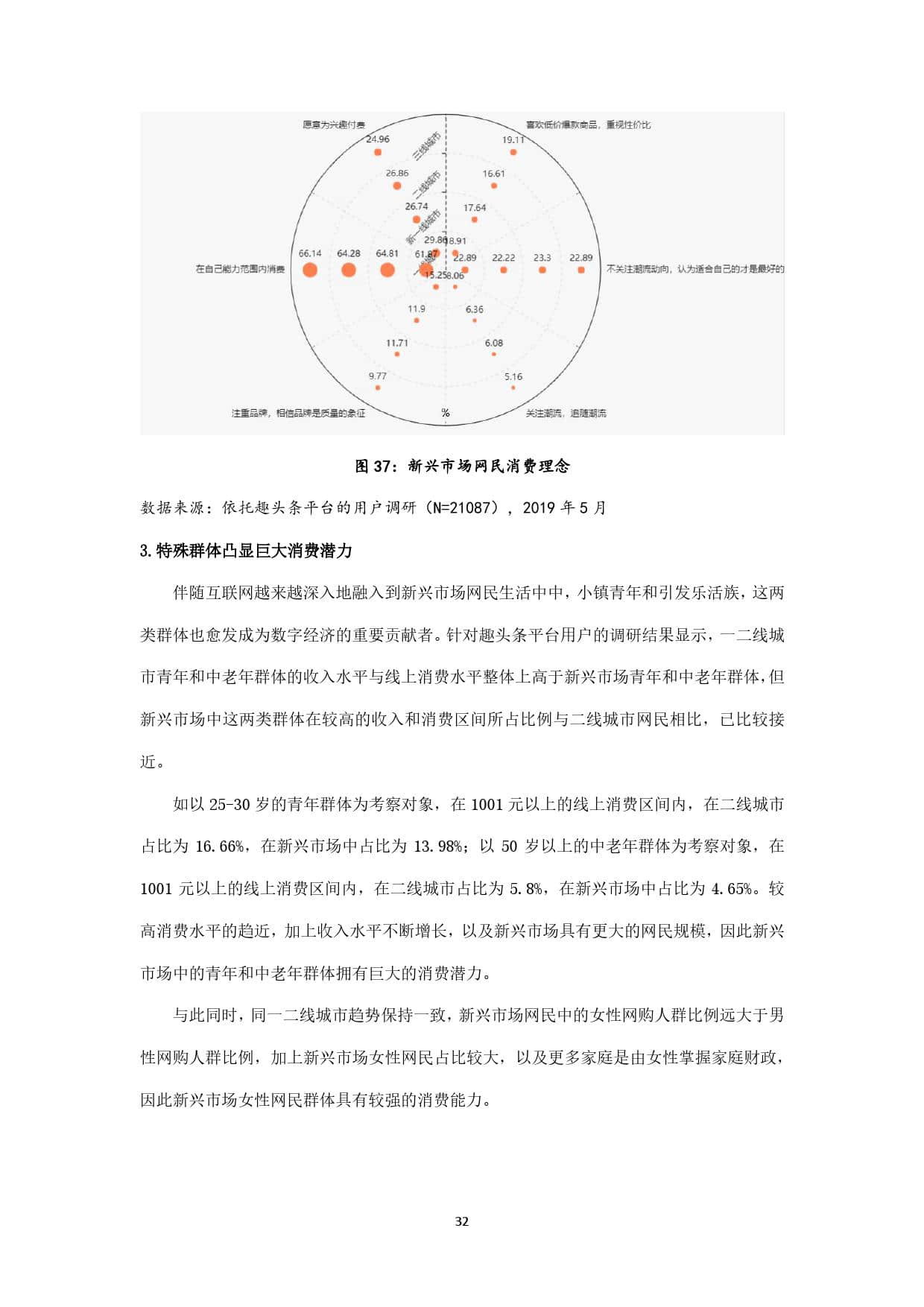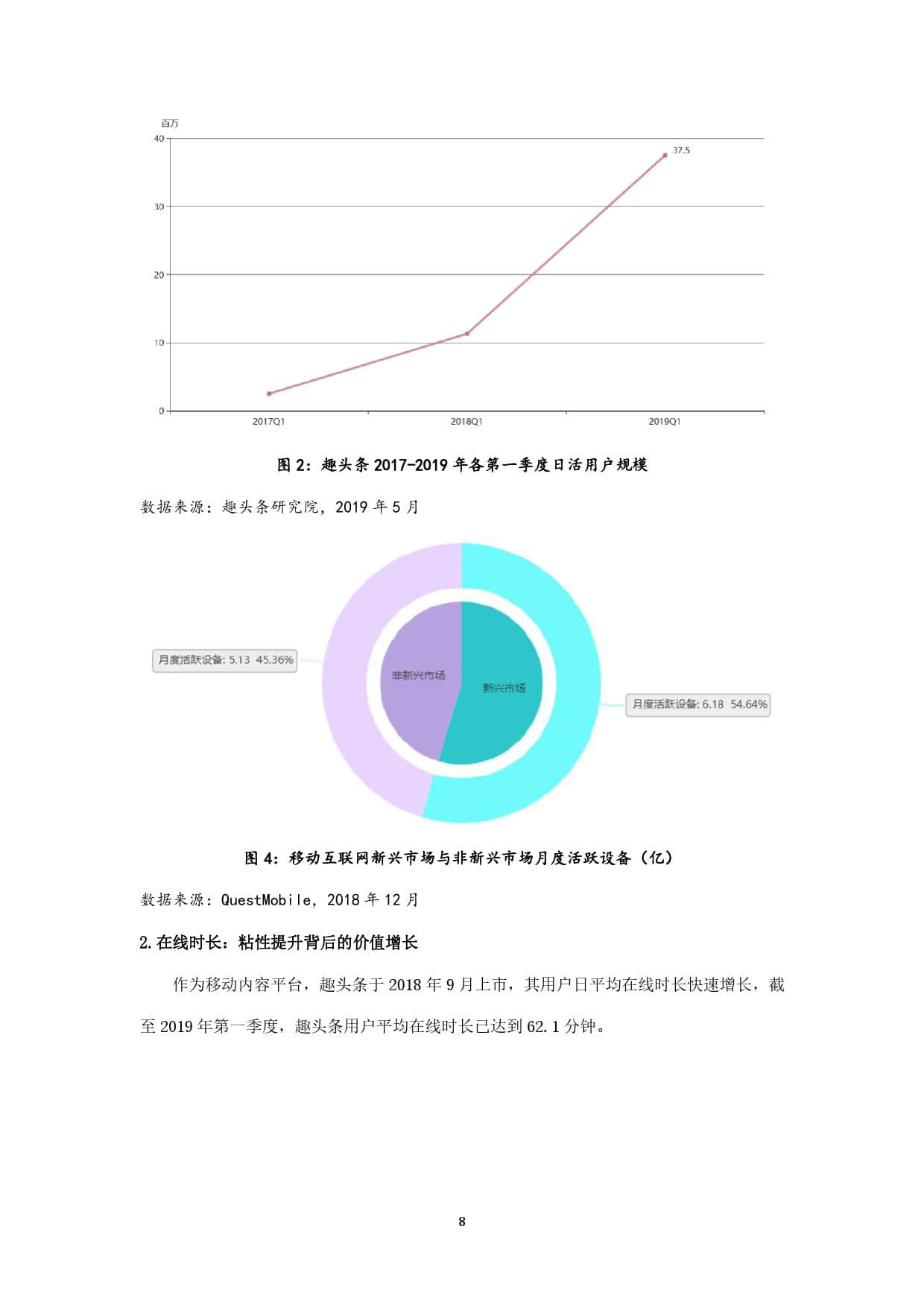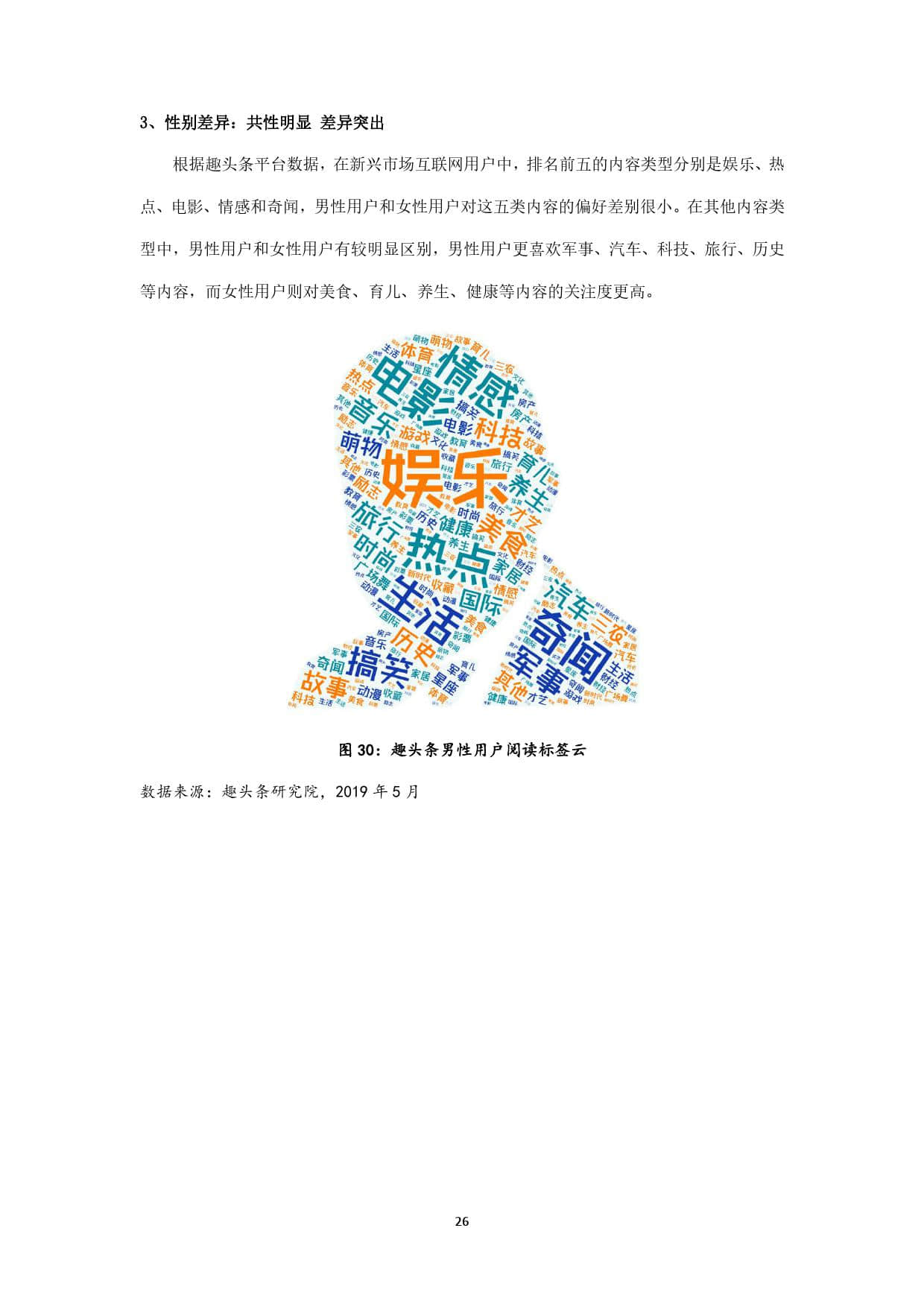 趣头条作为新锐移动内容平台,上线于2016年,其最初定位即在互联网的新兴市场,并持续深耕。截至2019年5月,趣头条用户规模超过3亿,其中70%以上的用户来自三线及以下新兴市场,如此庞大的用户基数,以及超过1.1亿的月活用户数,决定了其在互联网新兴市场中占据的主导地位。本报告以趣头条全国用户为主要样本,发掘三线及以下新兴市场网民的信息接触偏好,力图在了解互联网新兴市场网民特征的基础上,为其提供更精准有效的信息服务,同时响应配合国家发展智慧城市、数字乡村的整体战略布局,为数字中国建设提供有力支撑。