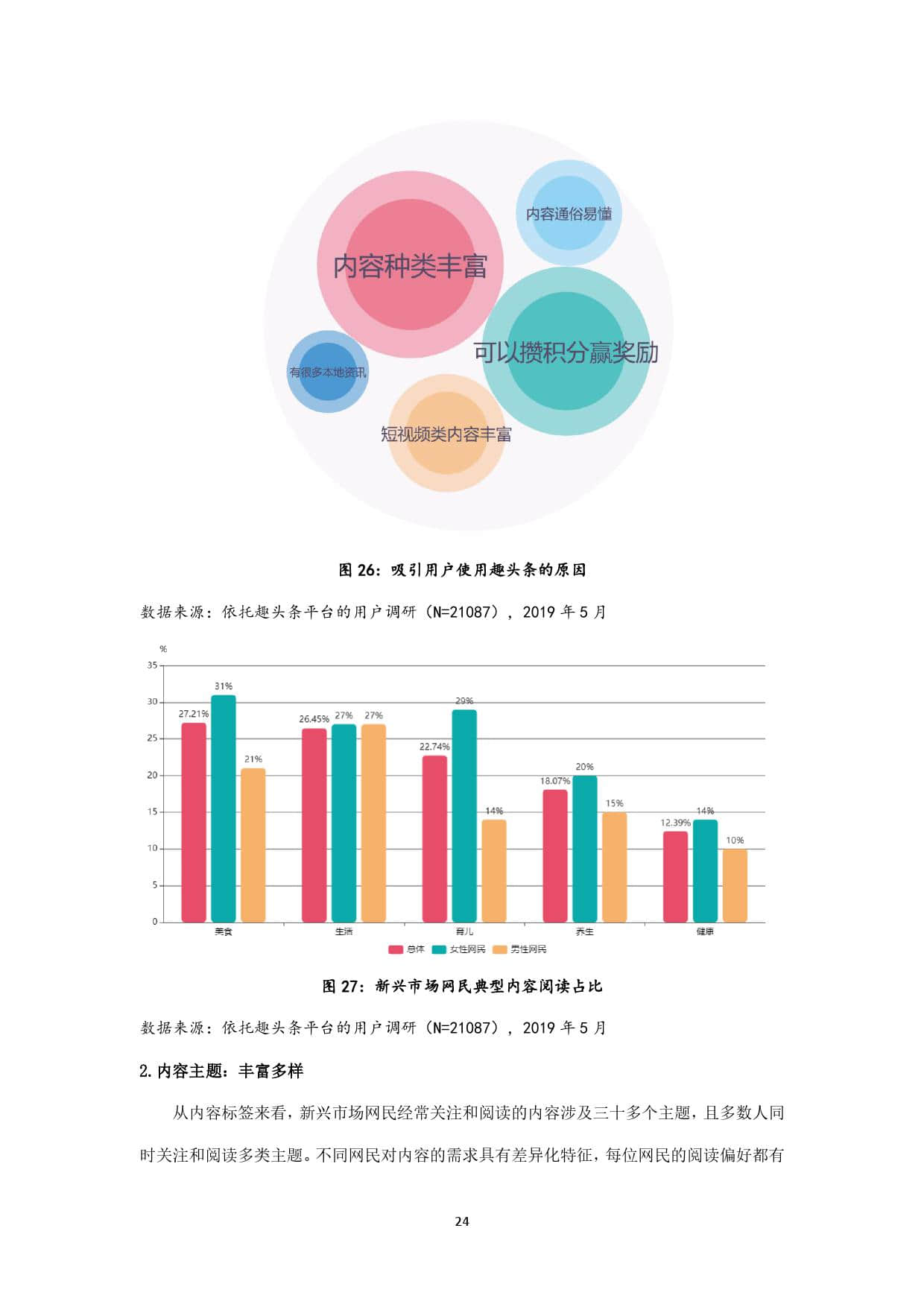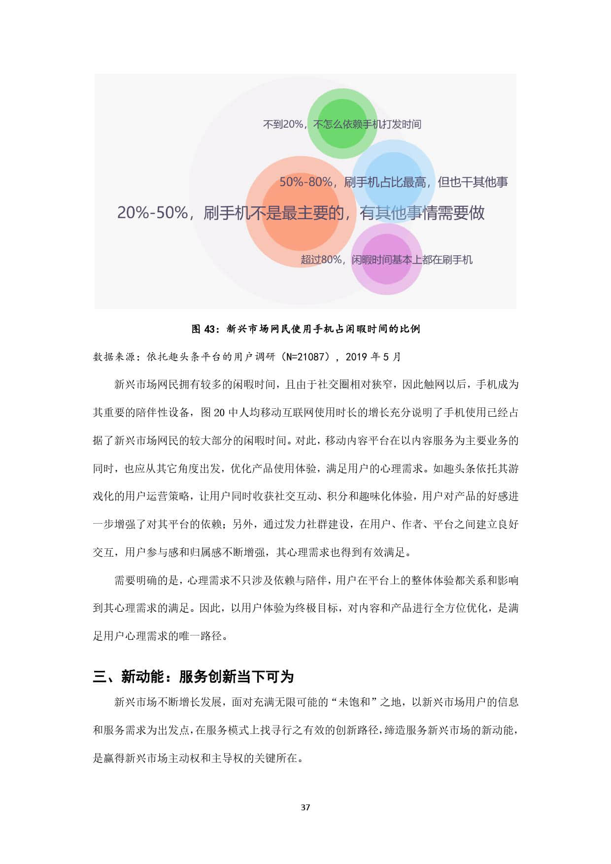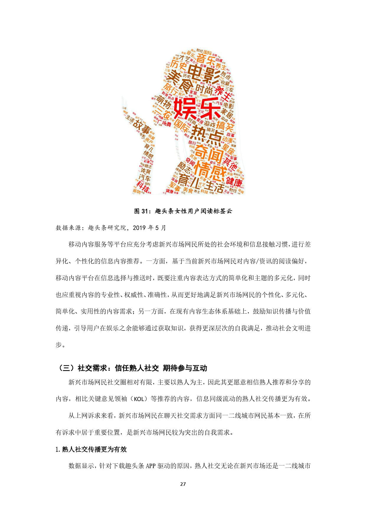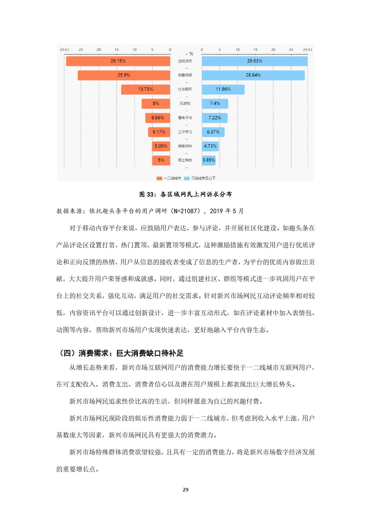 趣头条作为新锐移动内容平台,上线于2016年,其最初定位即在互联网的新兴市场,并持续深耕。截至2019年5月,趣头条用户规模超过3亿,其中70%以上的用户来自三线及以下新兴市场,如此庞大的用户基数,以及超过1.1亿的月活用户数,决定了其在互联网新兴市场中占据的主导地位。本报告以趣头条全国用户为主要样本,发掘三线及以下新兴市场网民的信息接触偏好,力图在了解互联网新兴市场网民特征的基础上,为其提供更精准有效的信息服务,同时响应配合国家发展智慧城市、数字乡村的整体战略布局,为数字中国建设提供有力支撑。