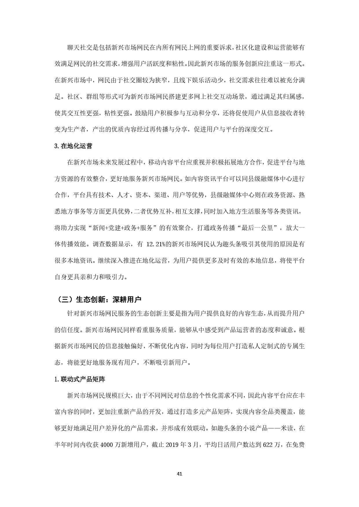 全媒体时代,伴随三线及以下新兴市场规模持续扩大,机遇也不断增加,新兴市场日益成为互联网发展新的竞逐之地。尤其是与一二线城市互联网发展水平相比,三线及以下新兴市场互联网发展相对缓慢,因此具有巨大增长空间和良好发展前景。当前时期,以县级融媒体中心为支撑的政府信息服务工作正逐渐向基层拓展、向群众靠近,力图打通“最后一公里”。与此同时,面对互联网存量市场趋于饱和,众多互联网企业纷纷瞄准三线及以下新兴市场,不断加快布局,积极发力,力求在这一新领域中占据主动。