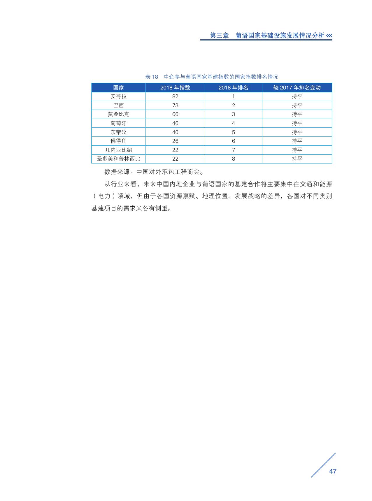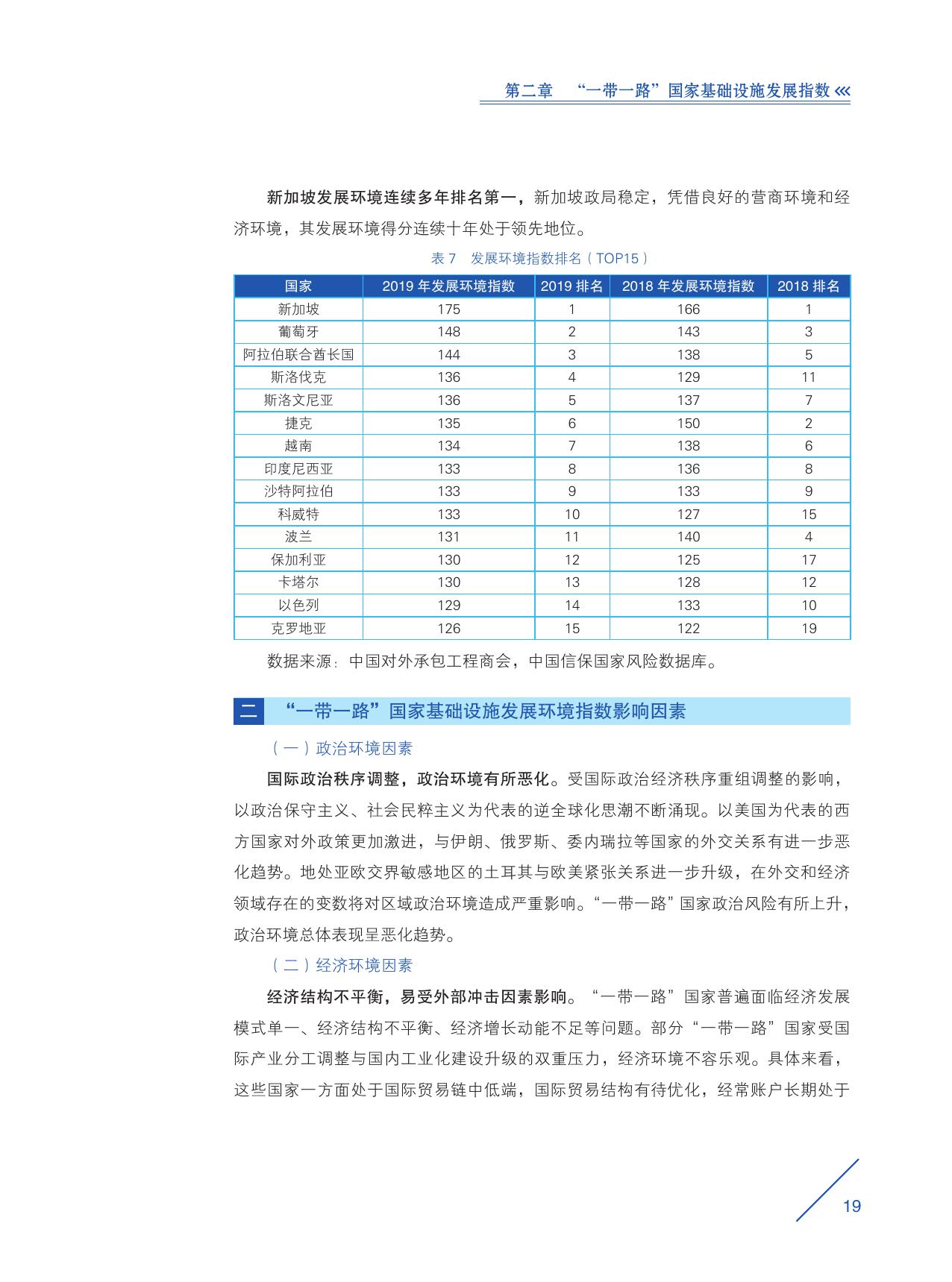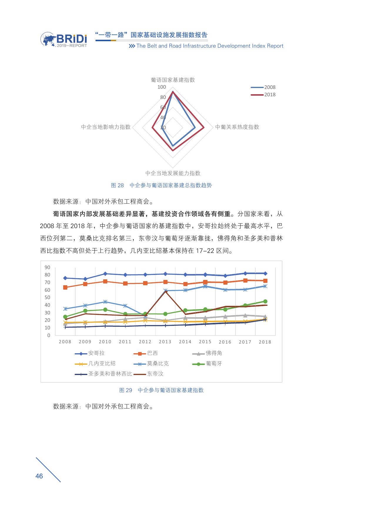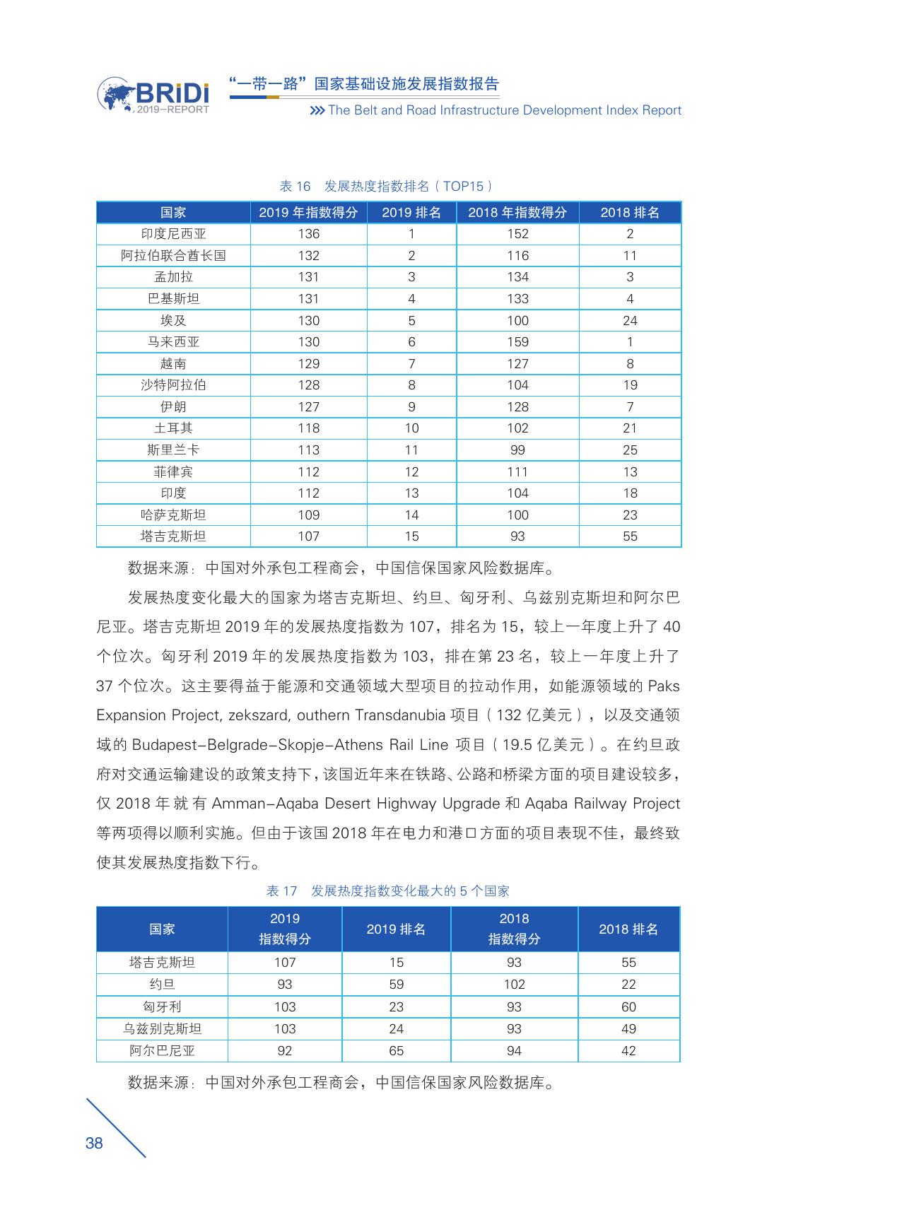 指数以 71 个重点国家 (63 个“一带一路”国家和 8 个葡语国家)为研究对象,从发展环境、发展需求、发展成本和发展热度四个维度深入分析基础设施行业发展情况,对未来2—3年基础设施行业的发展趋势进行了预测展望。