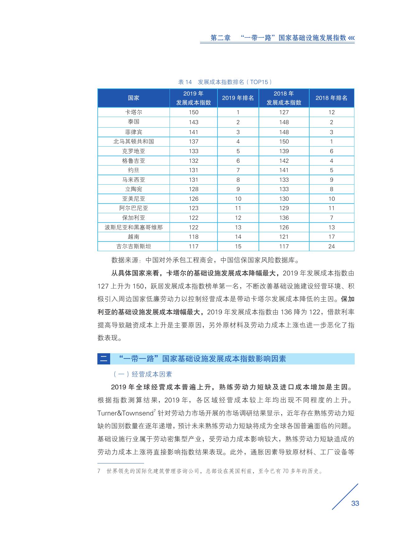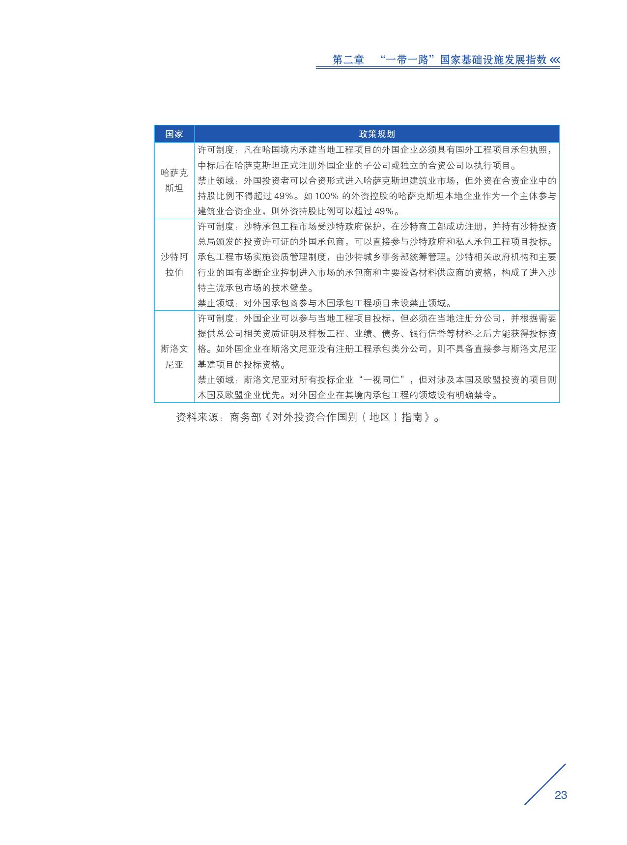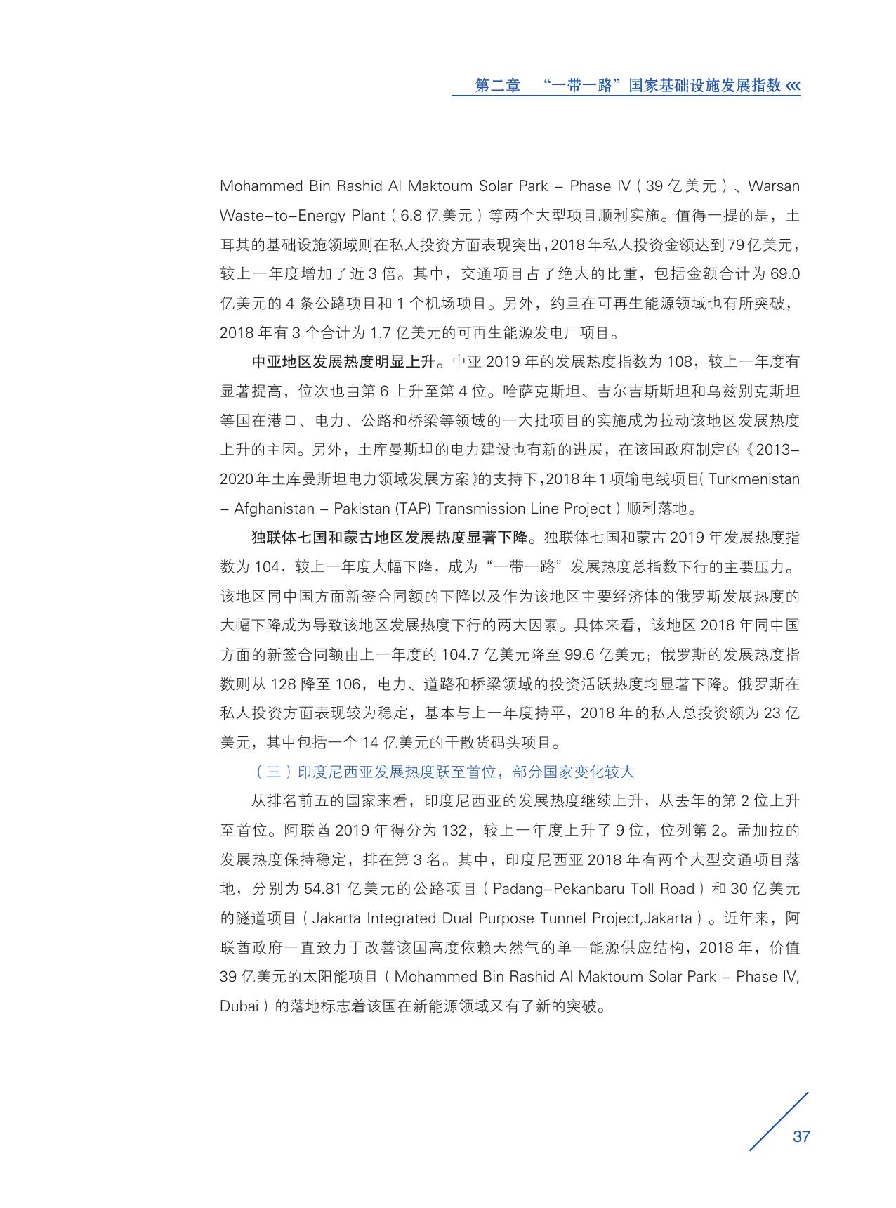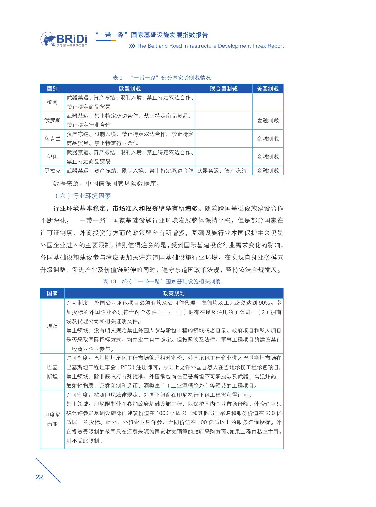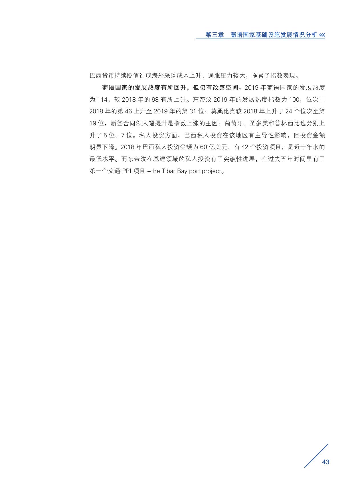 指数以 71 个重点国家 (63 个“一带一路”国家和 8 个葡语国家)为研究对象,从发展环境、发展需求、发展成本和发展热度四个维度深入分析基础设施行业发展情况,对未来2—3年基础设施行业的发展趋势进行了预测展望。