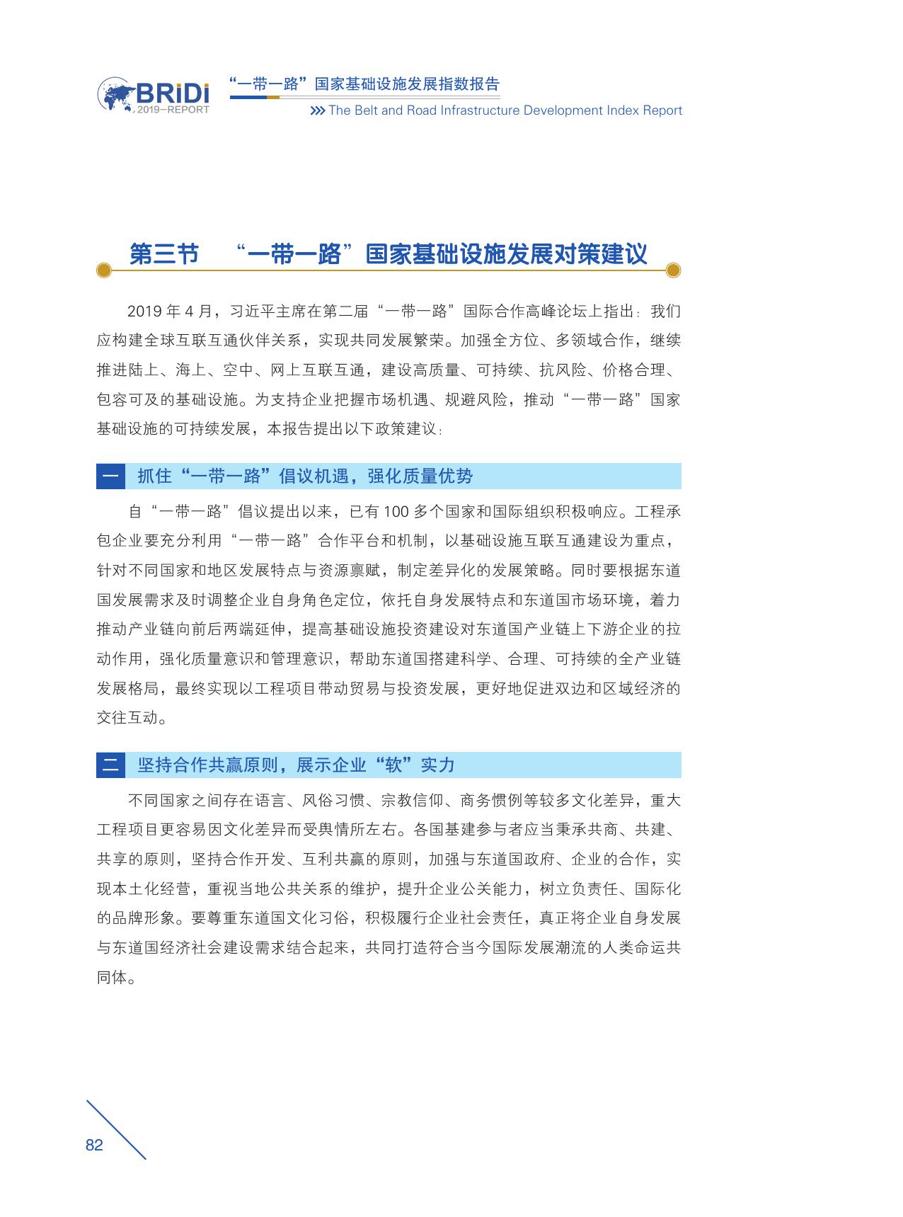 指数指出,当前,支持“一带一路”基础设施建设的资金来源更加多样,私人资本参与的规模有所上升;沿线国家参与基建合作的热情持续升温。指数预测,未来2—3年“一带一路”国家基础设施发展仍然表现良好。