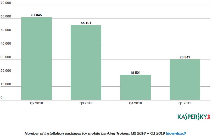第一季度共检测到29841个用于移动银行特洛伊木马的安装包,比2018年第四季度增加了近11000个。