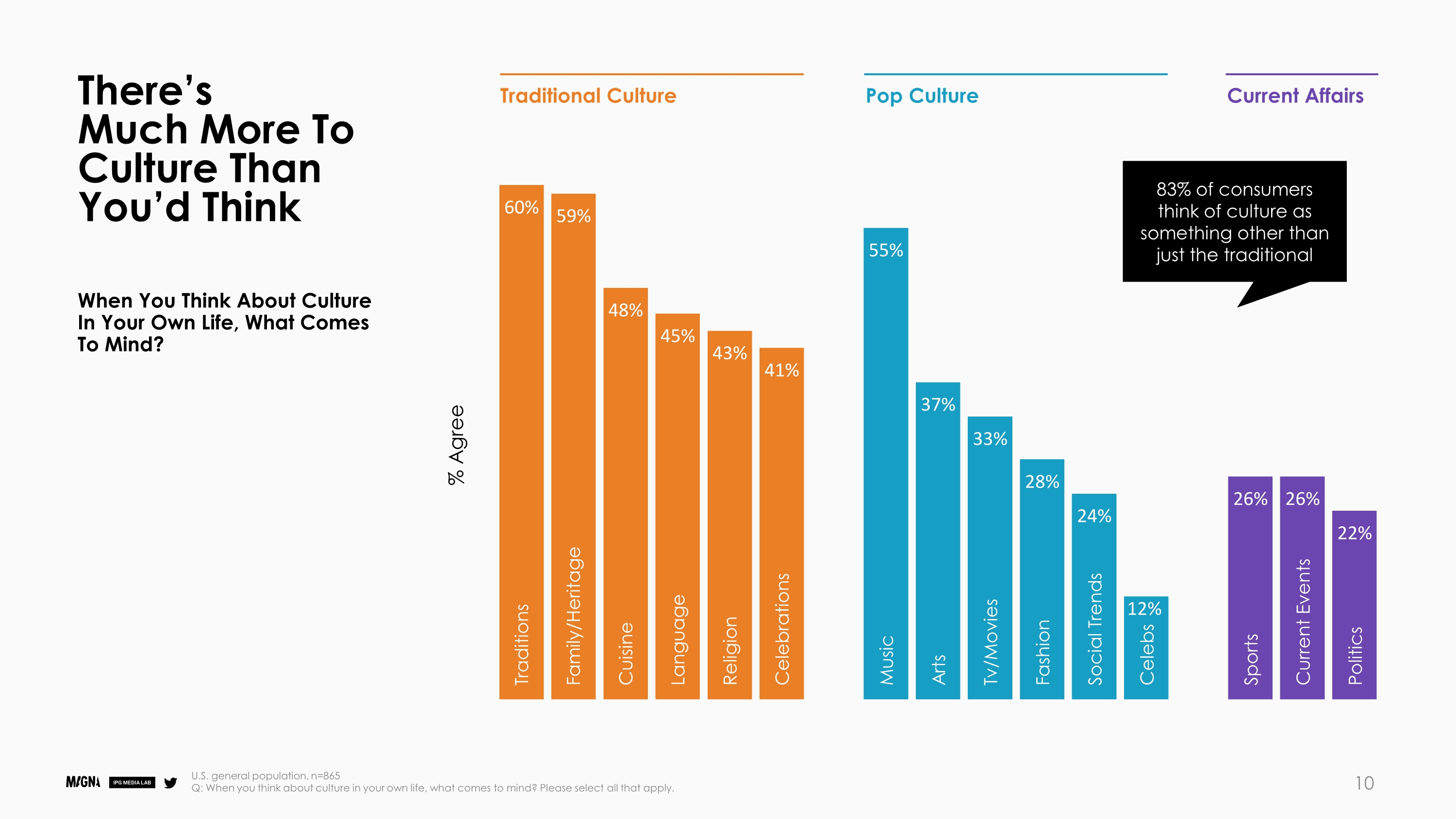 文化的定义已经扩大:当被问及如何看待自己生活中的文化时,83%的消费者认为文化不仅仅是语言、宗教或烹饪等传统文化。