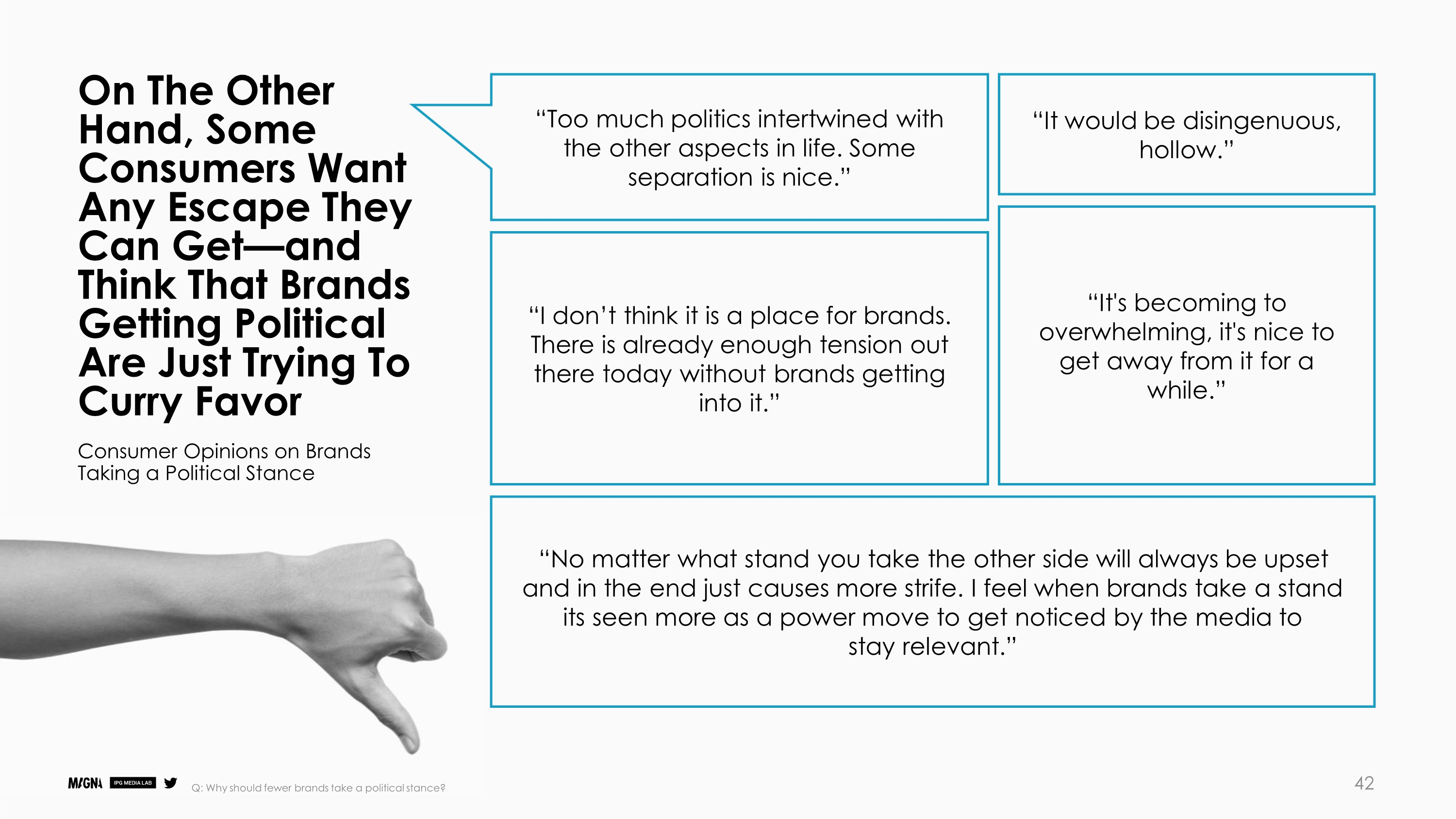 美国密歇根大学全球首席跨文化官员Deidre Smalls-Landau说:“最重要的文化对话正在进行并重塑我们生活的世界,品牌根本不能袖手旁观。消费者希望知道他们将钱交给那些分享他们价值观并且对社会问题充满热情的公司。简而言之,做得好的品牌可能会做得更好。”