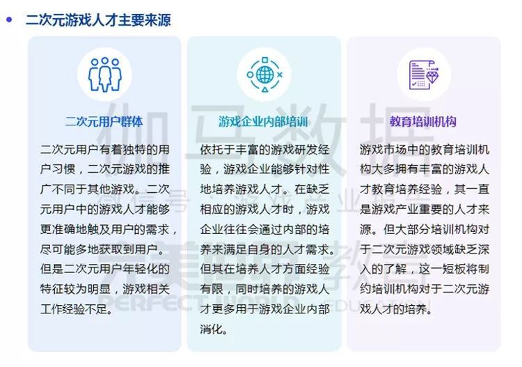 当前二次元游戏人才的来源主要有二次元用户、培训机构以及游戏企业的内部培训这三种途径。