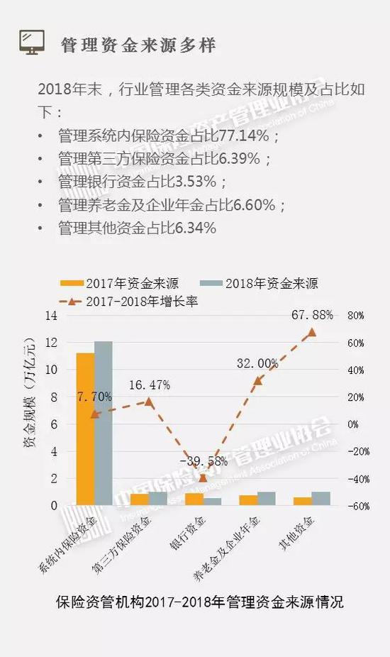 保险资管业协会:2018-2019保险资金运用最新调研数据 披露了221家保险机构资金运用的最新调研数据。报告显示,超七成保险资金由险企自主投资或委托保险资管机构投资。截至2018年末,保险资产管理机构总资产管理规模15.56万亿元,2018年规模增长率10.02%。保险资管机构管理的资金中,保险资金是最重要的资金来源。从投资方向看,固定收益类投资仍然是保险资金的主要配置对象。 更多阅读:中国人民银行:2019年第一季度城镇储户问卷调查报告中国银保监会:2020年三季度银行业保险业主要监管指标数据情况中国统计局:2018年1-8月份全国规模以上工业企业利润增长16.2%商务部:2017年全年全国吸收外资情况Talkdesk:保险业客户服务的未来针对年轻人的健康保险前景如何?针对年轻人的健康保险前景如何?森林火灾和极端高温给保险业带来了什么变化?IDC:2022年中国保险业 IT 解决方案市场规模达到 107.6亿元人民币 同比增长6.3%德勤咨询:2024年全球保险行业展望(附下载)德勤:2023年保险监管展望报告中国保险行业协会:2021年度人身险公司互联网保险业务经营情况分析慧择保险:中国保险细分消费人群洞察白皮书Allianz:2022年全球保险报告美世达:2022年全球保险公司报告