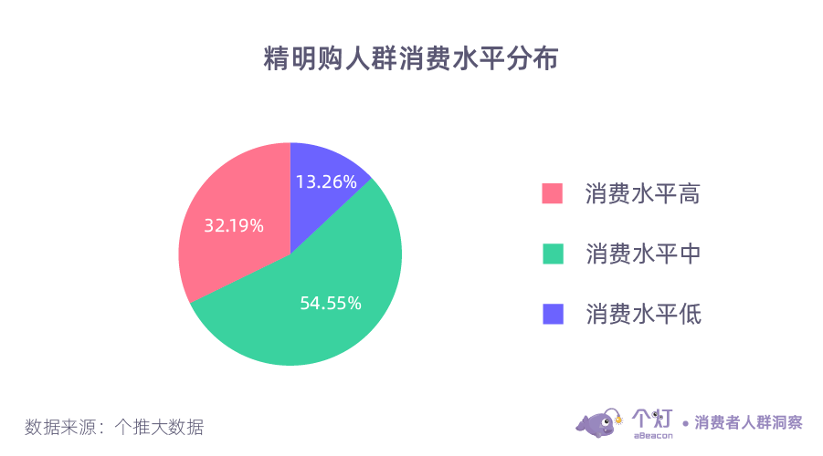 让人意想不到的是,精明购群体中,中高消费水平人群占比87%。由此看来,精明购不等于省吃俭用,而是用同样的钱买更值的商品。