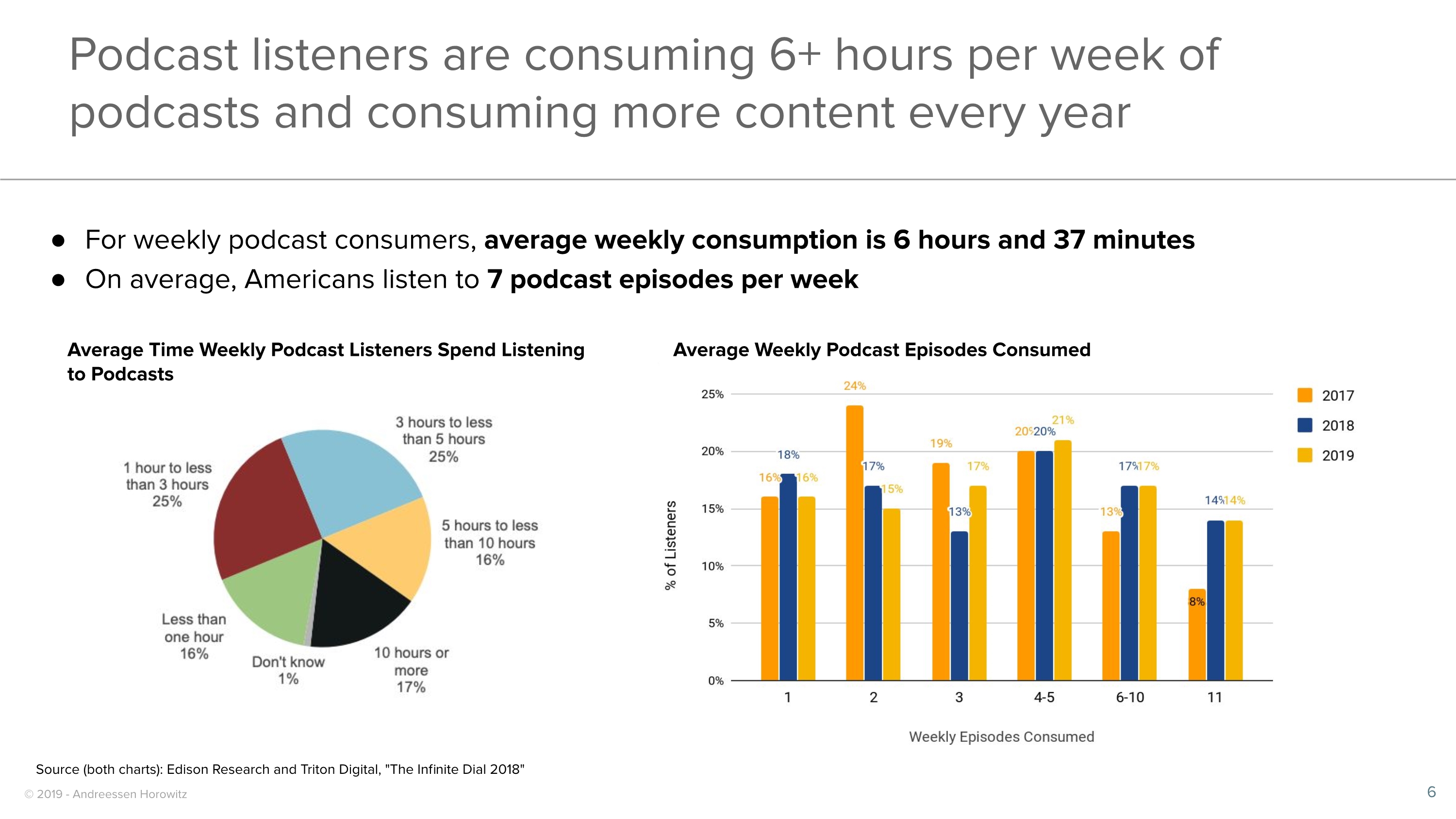 人们已经在播客上花费了大量时间,而且还在增长:听众每周消耗6个小时以上的时间。
